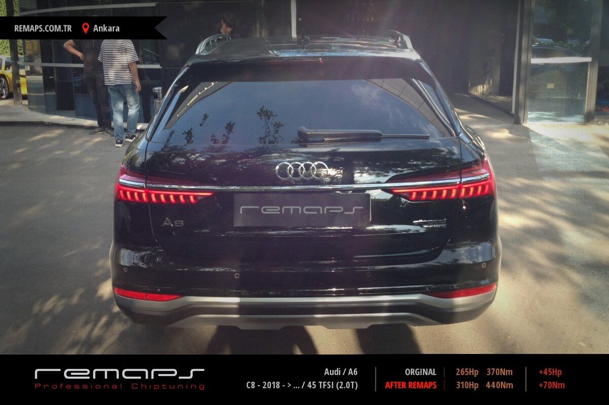 Audi A6 model benzinli aracınızın ürettiği 265hp / 370nm motor gücünü, Türkiye normlarında hazırladığımız chip tuning (ecu) yazılım uygulaması sonrasında, 310hp / 440nm ’lik performansa ulaşmasını sağlamaktayız. Kazanılan +45hp / + 70nm güç artışı sonrasında aracınızın egzoz emisyon değerleri kesinlikle değişmemekte ve duman atmamaktadır.