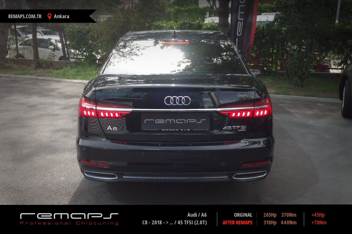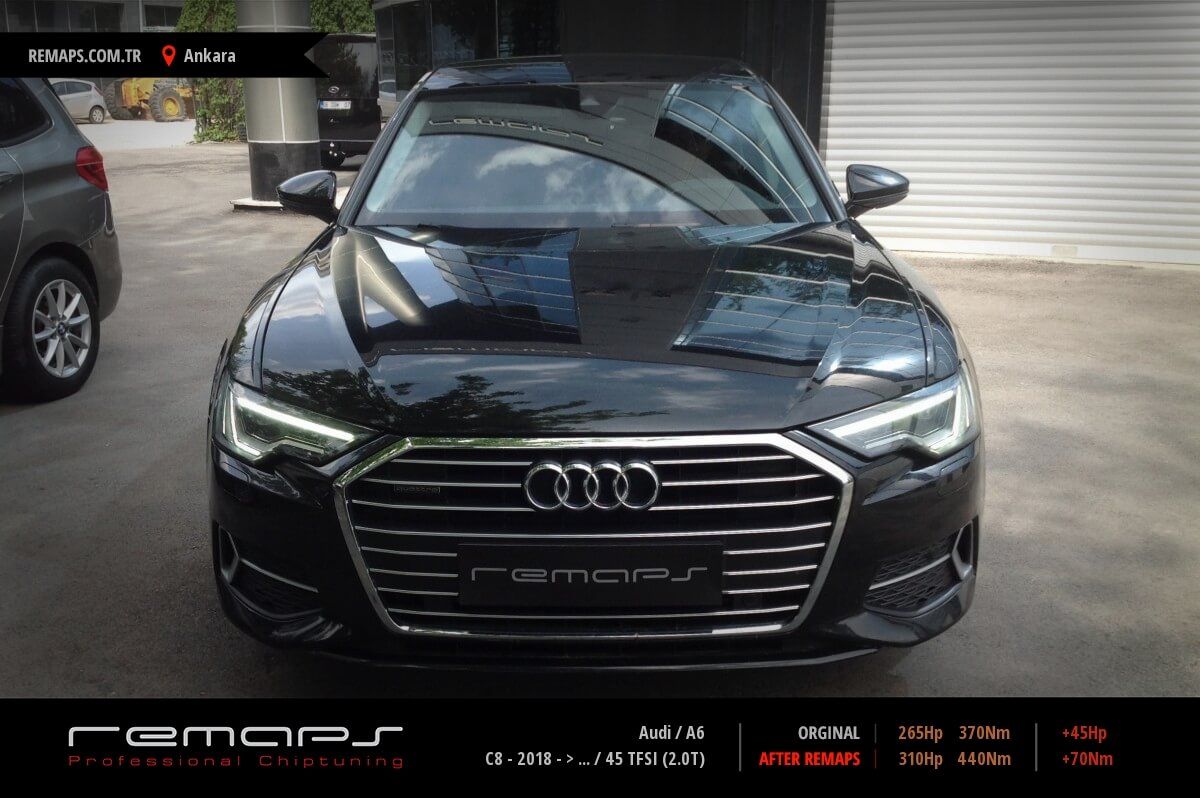 Audi A6 model benzinli aracınızın ürettiği 265hp / 370nm motor gücünü, Türkiye normlarında hazırladığımız chip tuning (ecu) yazılım uygulaması sonrasında, 310hp / 440nm ’lik performansa ulaşmasını sağlamaktayız. Kazanılan +45hp / + 70nm güç artışı sonrasında aracınızın egzoz emisyon değerleri kesinlikle değişmemekte ve duman atmamaktadır.
