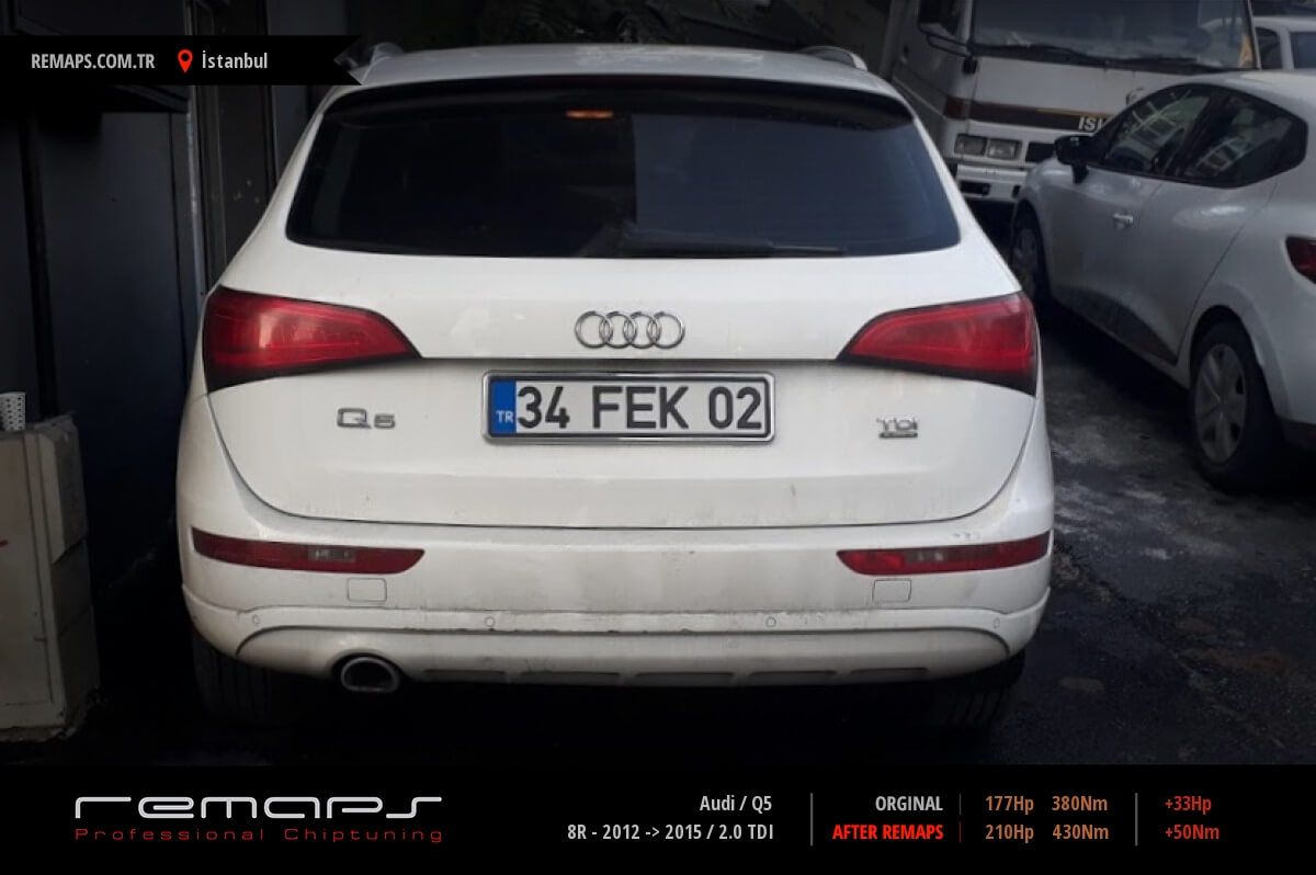 Audi Q5 model dizel aracınızın ürettiği 177hp / 380nm motor gücünü, Türkiye normlarında verimli hale getirmek adına hazırladıgımız chip tuning (ecu) yazılım uygulaması sonrasında, 210hp / 430nm ’lik performans artışı öngörmekteyiz. Kazanılan + 33hp / + 50nm güç artışı sonrasında kesinlike çevreye rahatsızlık vermeyecek (duman atmayacak) şekilde eksoz emisyon değerleriniz korunarak hazırlanmaktadır.