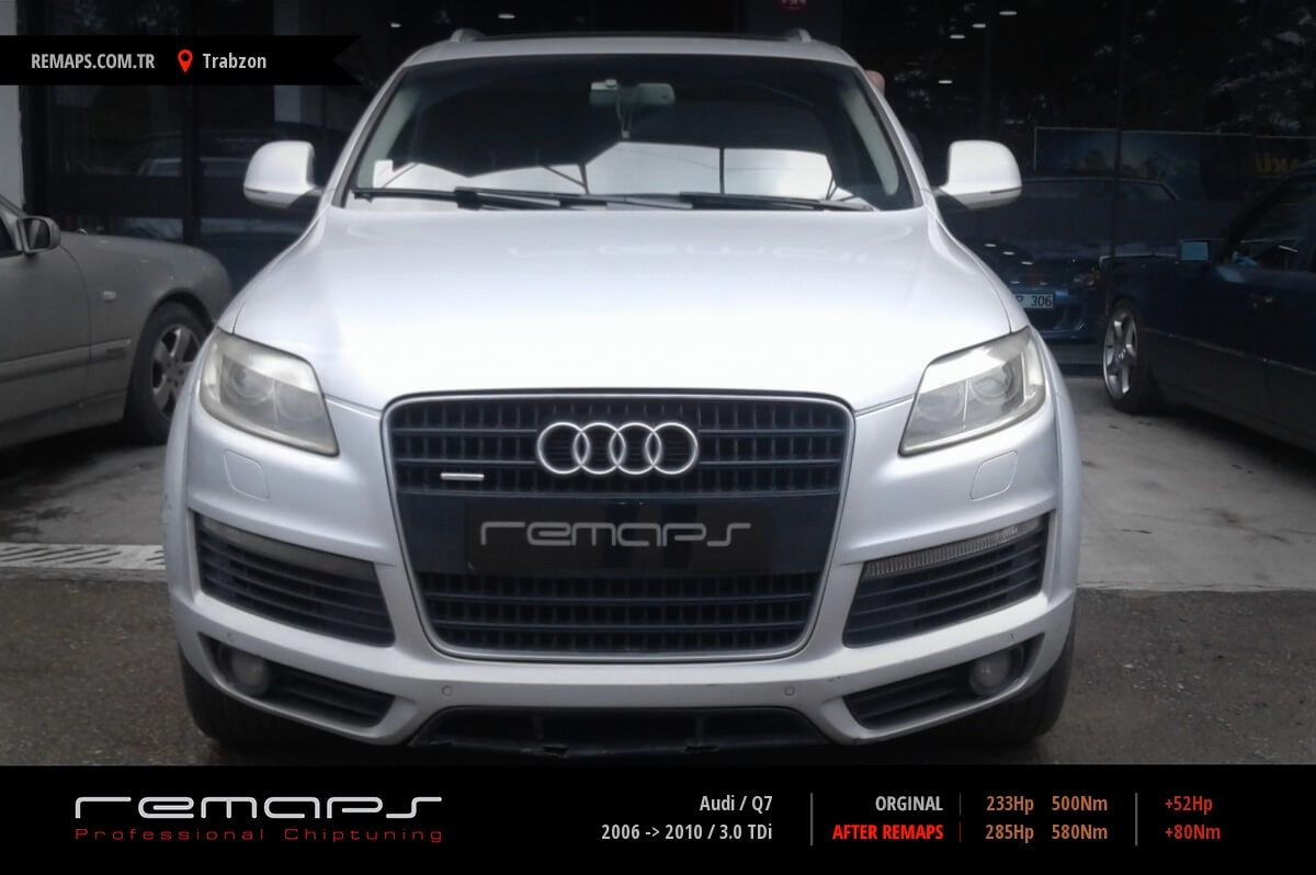 Audi Q7 model dizel aracınızın ürettiği 233hp / 500nm motor gücünü, Türkiye normlarında verimli hale getirmek adına hazırladıgımız chip tuning (ecu) yazılım uygulaması sonrasında, 285hp / 580nm ’lik performans artışı öngörmekteyiz. Kazanılan + 52hp / + 80nm güç artışı sonrasında kesinlike çevreye rahatsızlık vermeyecek (duman atmayacak) şekilde eksoz emisyon değerleriniz korunarak hazırlanmaktadır.