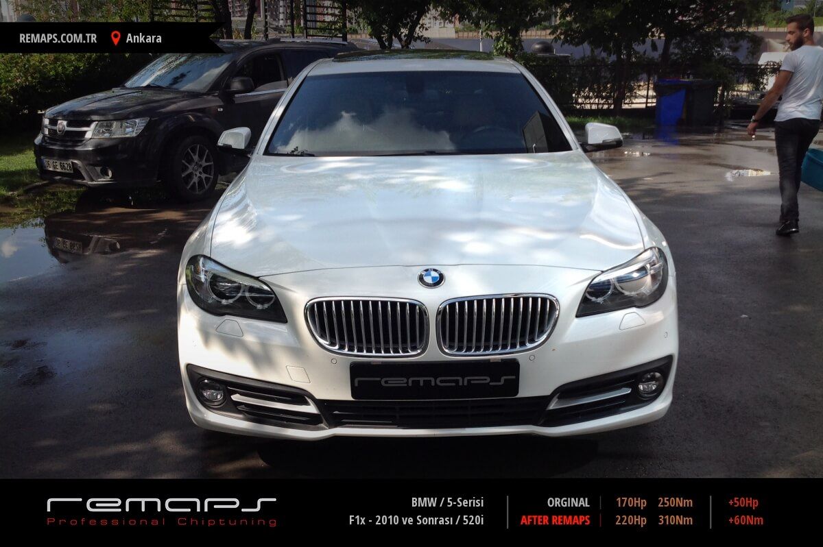BMW 5-Serisi model benzinli aracınızın ürettiği 170hp / 250nm motor gücünü, Türkiye normlarında hazırladığımız chip tuning (ecu) yazılım uygulaması sonrasında, 220hp / 310nm ’lik performansa ulaşmasını sağlamaktayız. Kazanılan +50hp / + 60nm güç artışı sonrasında aracınızın egzoz emisyon değerleri kesinlikle değişmemekte ve duman atmamaktadır.