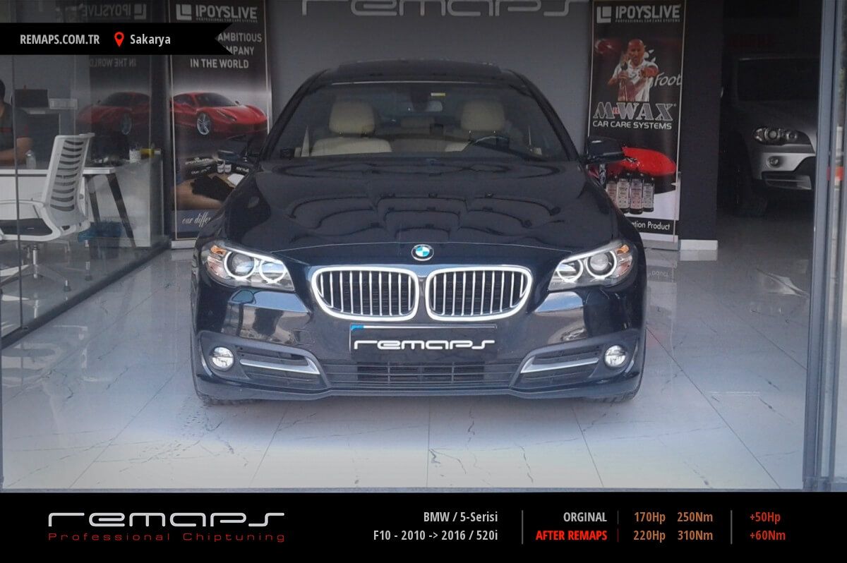BMW 5-Serisi model benzinli aracınızın ürettiği 170hp / 250nm motor gücünü, Türkiye normlarında hazırladığımız chip tuning (ecu) yazılım uygulaması sonrasında, 220hp / 310nm ’lik performansa ulaşmasını sağlamaktayız. Kazanılan +50hp / + 60nm güç artışı sonrasında aracınızın egzoz emisyon değerleri kesinlikle değişmemekte ve duman atmamaktadır.