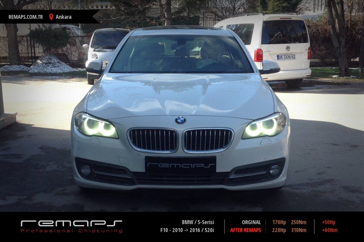 BMW 5-Serisi model benzinli aracınızın ürettiği 170hp / 250nm motor gücünü, Türkiye normlarında hazırladığımız chip tuning (ecu) yazılım uygulaması sonrasında, 220hp / 310nm ’lik performansa ulaşmasını sağlamaktayız. Kazanılan +50hp / + 60nm güç artışı sonrasında aracınızın egzoz emisyon değerleri kesinlikle değişmemekte ve duman atmamaktadır.