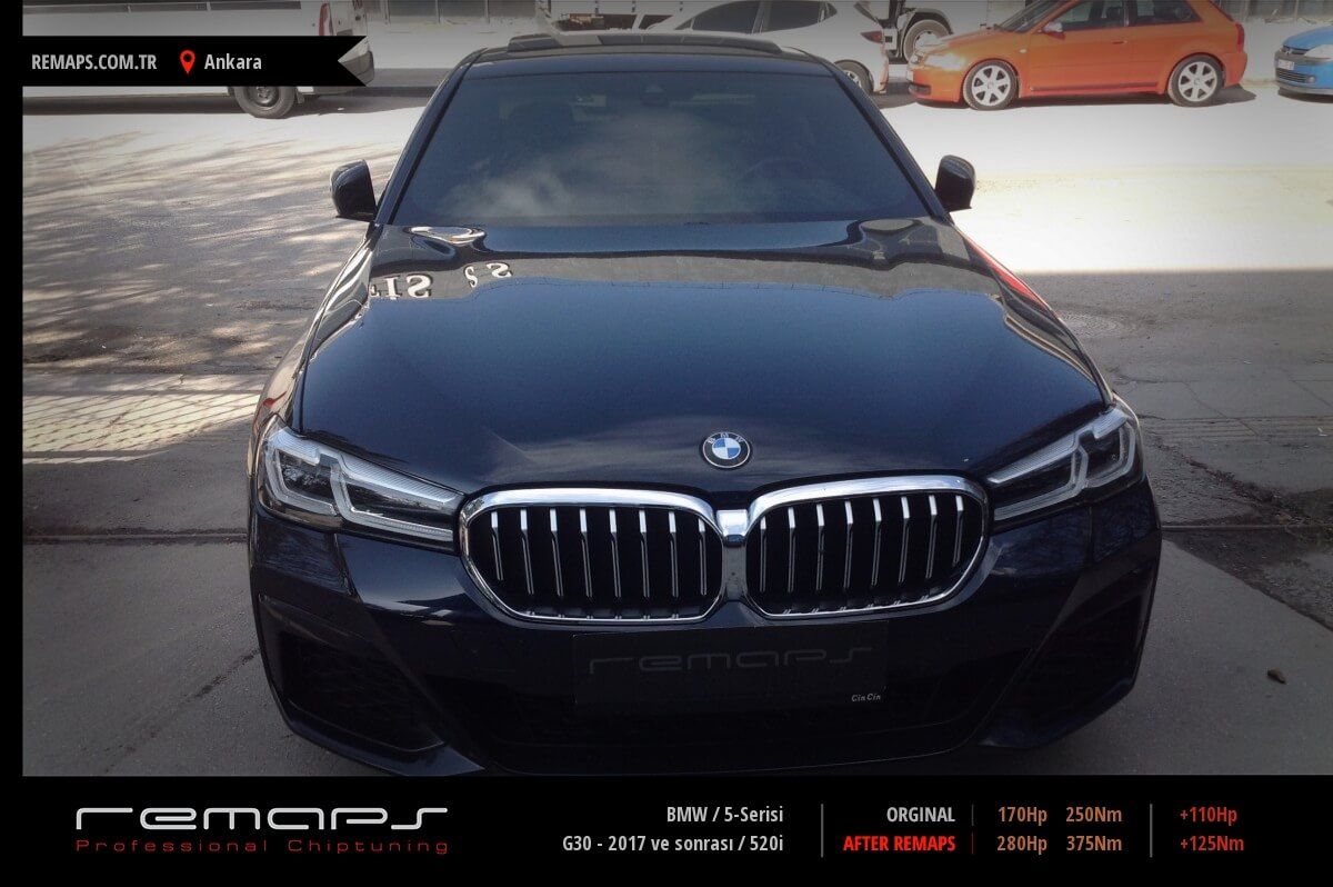 BMW 5-Serisi model benzinli aracınızın ürettiği 170hp / 250nm motor gücünü, Türkiye normlarında hazırladığımız chip tuning (ecu) yazılım uygulaması sonrasında, 280hp / 375nm ’lik performansa ulaşmasını sağlamaktayız. Kazanılan +110hp / + 125nm güç artışı sonrasında aracınızın egzoz emisyon değerleri kesinlikle değişmemekte ve duman atmamaktadır.