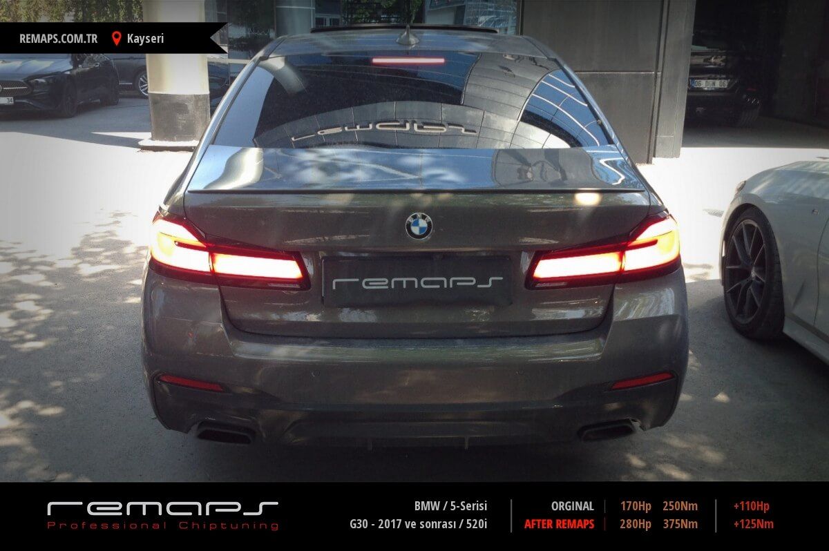 BMW 5-Serisi model benzinli aracınızın ürettiği 170hp / 250nm motor gücünü, Türkiye normlarında hazırladığımız chip tuning (ecu) yazılım uygulaması sonrasında, 280hp / 375nm ’lik performansa ulaşmasını sağlamaktayız. Kazanılan +110hp / + 125nm güç artışı sonrasında aracınızın egzoz emisyon değerleri kesinlikle değişmemekte ve duman atmamaktadır.