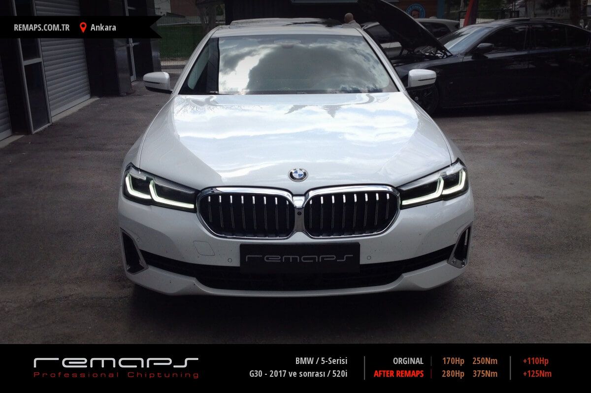 BMW 5-Serisi model benzinli aracınızın ürettiği 170hp / 250nm motor gücünü, Türkiye normlarında hazırladığımız chip tuning (ecu) yazılım uygulaması sonrasında, 280hp / 375nm ’lik performansa ulaşmasını sağlamaktayız. Kazanılan +110hp / + 125nm güç artışı sonrasında aracınızın egzoz emisyon değerleri kesinlikle değişmemekte ve duman atmamaktadır.
