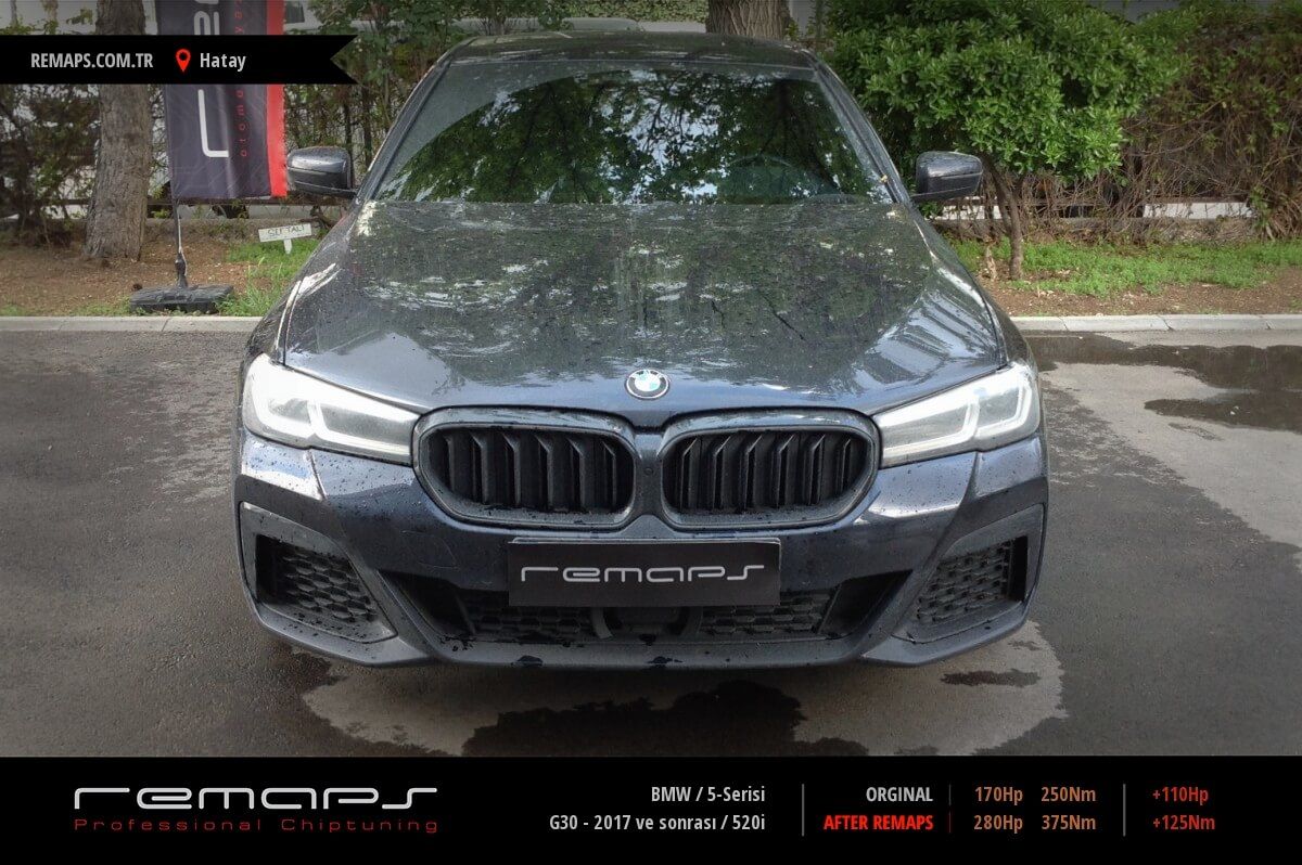 BMW 5-Serisi model benzinli aracınızın ürettiği 170hp / 250nm motor gücünü, Türkiye normlarında hazırladığımız chip tuning (ecu) yazılım uygulaması sonrasında, 280hp / 375nm ’lik performansa ulaşmasını sağlamaktayız. Kazanılan +110hp / + 125nm güç artışı sonrasında aracınızın egzoz emisyon değerleri kesinlikle değişmemekte ve duman atmamaktadır.