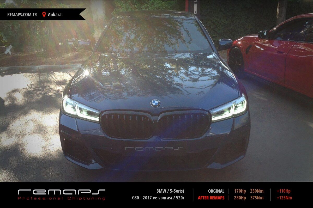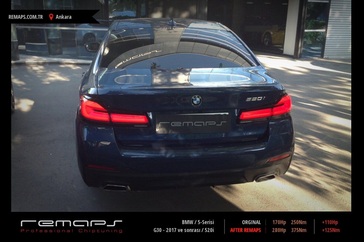 2014 model 1.6 i twin turbo 170 bg olan BMW 5.20 i ( F 10 ) aracıma Remaps te chip tuning uygulaması yaptırdım. Uygulama sonrası 265 bg gücüne ulaşan aracımı adeta tanıyamadım. Yakıt gözle görülür oranda düştü. ( Ankara - Konya ) 7.0 lt / 100 km. Daha önce 8,2 lt / 100 km ölçmüştüm. Çok memnunum , teşekkürler Remaps. BMW 5-Serisi 520i - 170Hp @240 Hp