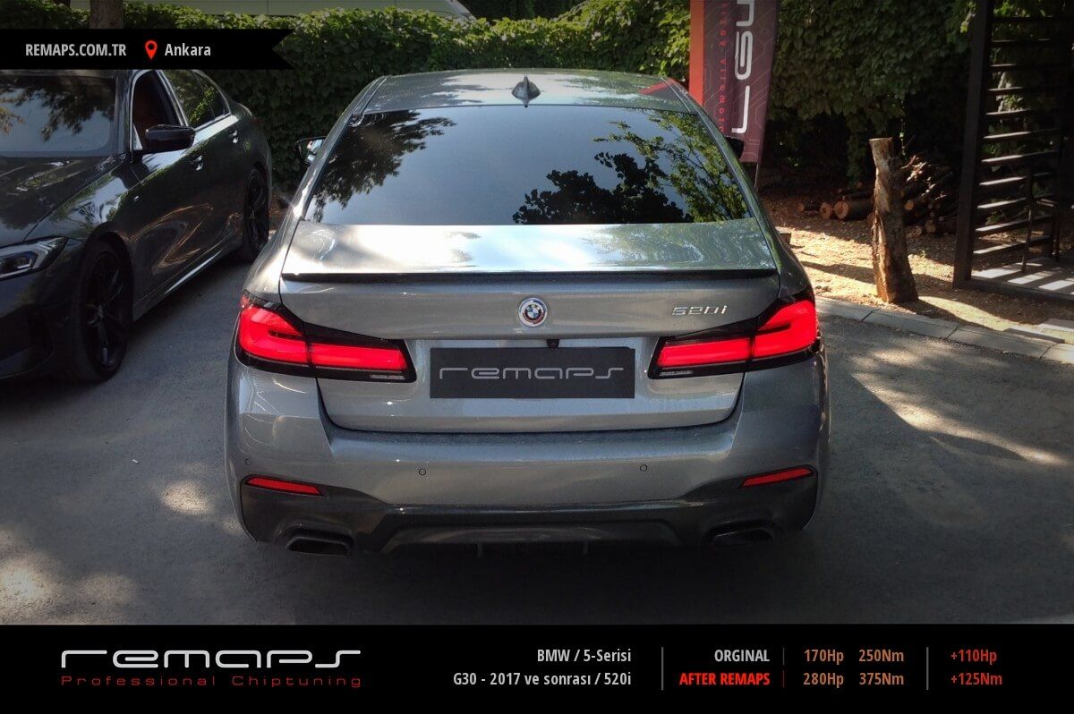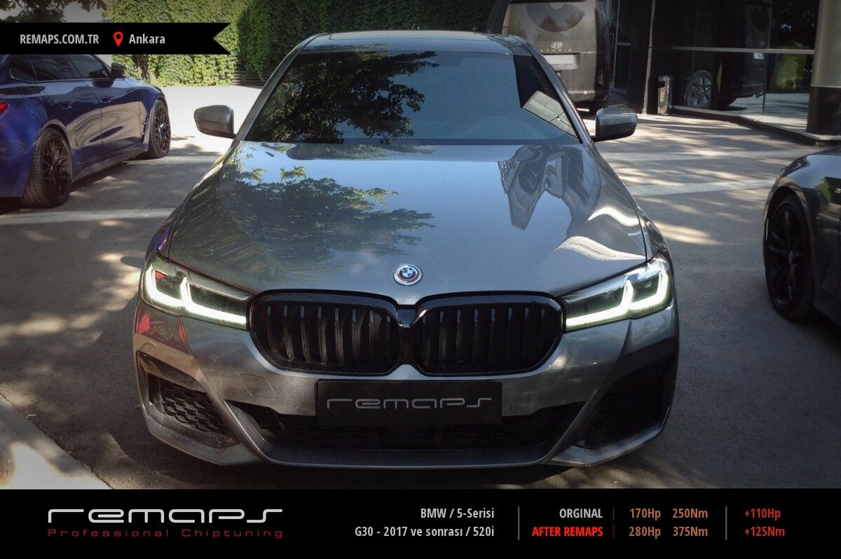 BMW 5-Serisi model benzinli aracınızın ürettiği 170hp / 250nm motor gücünü, Türkiye normlarında hazırladığımız chip tuning (ecu) yazılım uygulaması sonrasında, 280hp / 375nm ’lik performansa ulaşmasını sağlamaktayız. Kazanılan +110hp / + 125nm güç artışı sonrasında aracınızın egzoz emisyon değerleri kesinlikle değişmemekte ve duman atmamaktadır.
