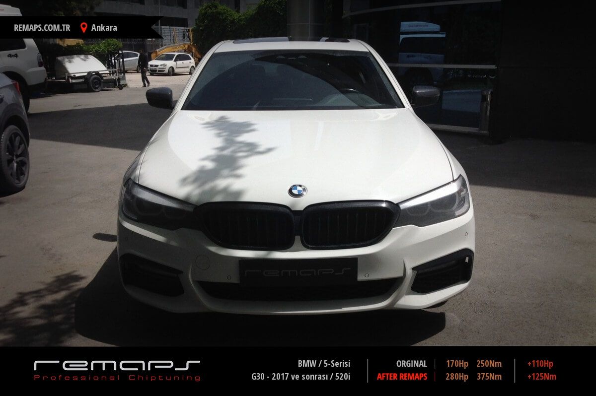 BMW 5-Serisi model benzinli aracınızın ürettiği 170hp / 250nm motor gücünü, Türkiye normlarında hazırladığımız chip tuning (ecu) yazılım uygulaması sonrasında, 280hp / 375nm ’lik performansa ulaşmasını sağlamaktayız. Kazanılan +110hp / + 125nm güç artışı sonrasında aracınızın egzoz emisyon değerleri kesinlikle değişmemekte ve duman atmamaktadır.