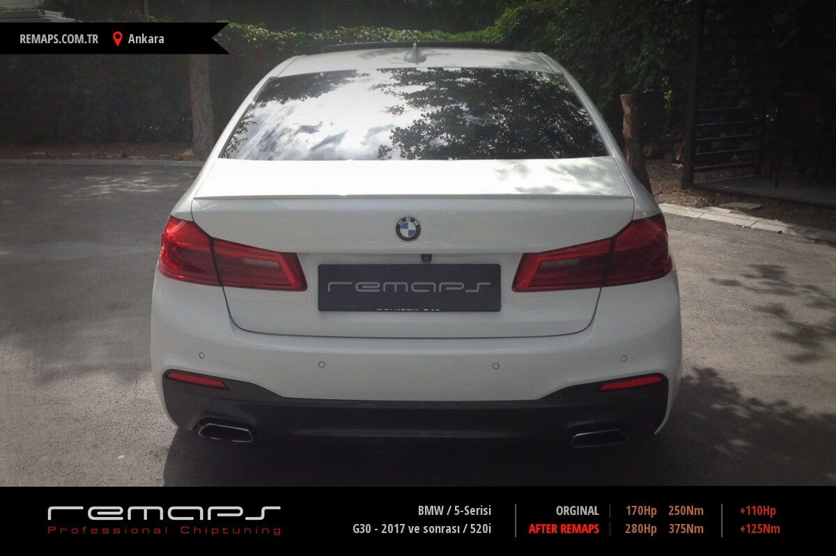 BMW 5-Serisi model benzinli aracınızın ürettiği 170hp / 250nm motor gücünü, Türkiye normlarında hazırladığımız chip tuning (ecu) yazılım uygulaması sonrasında, 280hp / 375nm ’lik performansa ulaşmasını sağlamaktayız. Kazanılan +110hp / + 125nm güç artışı sonrasında aracınızın egzoz emisyon değerleri kesinlikle değişmemekte ve duman atmamaktadır.