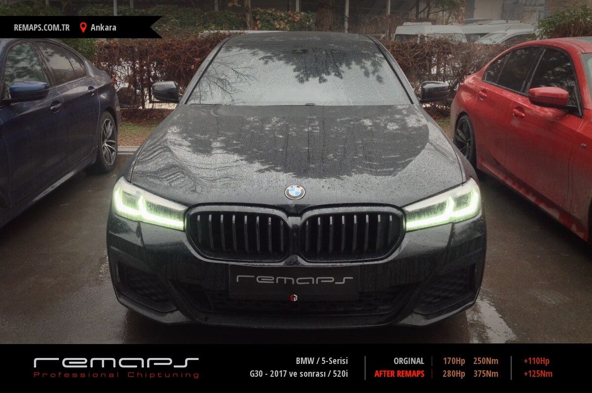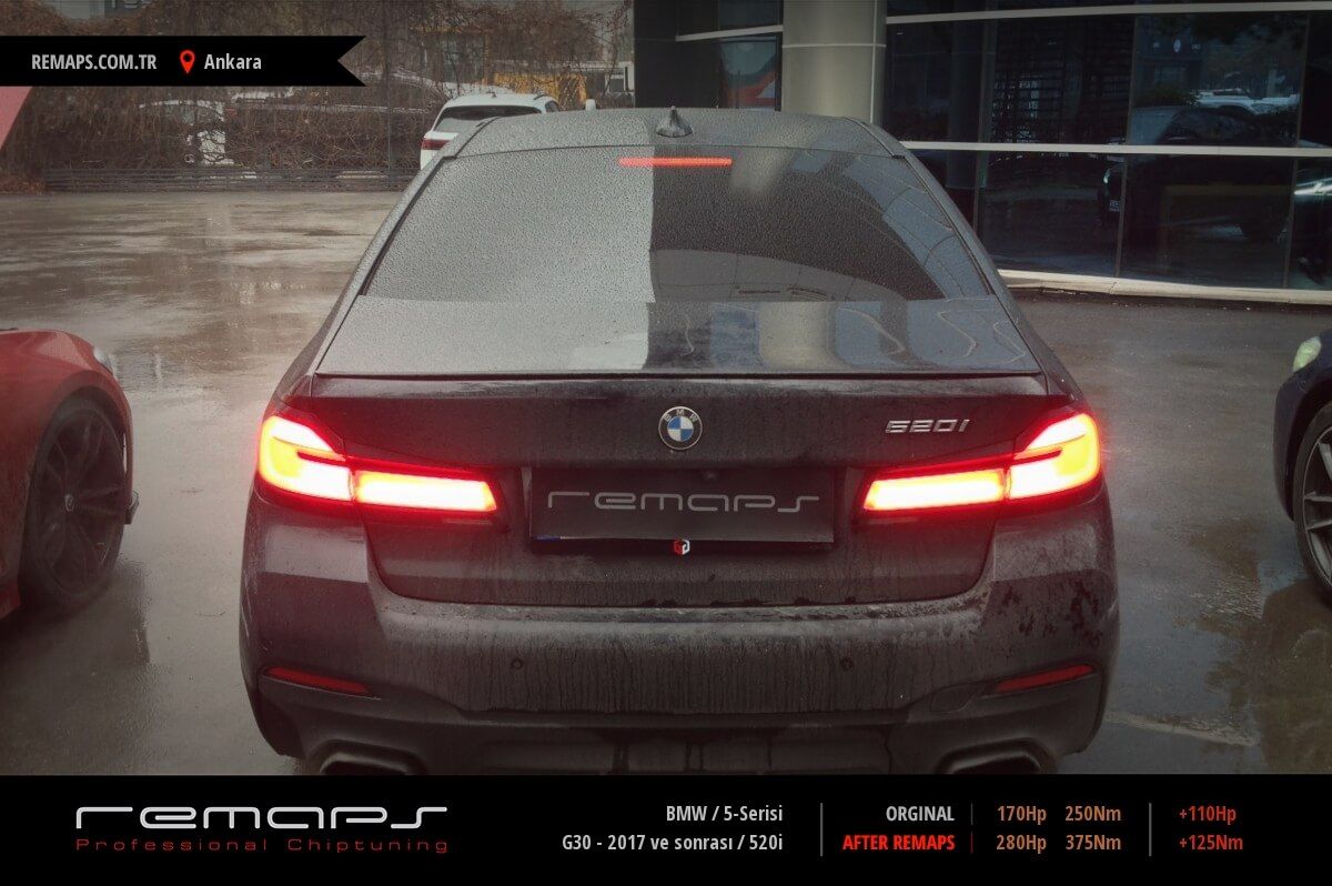2014 model 1.6 i twin turbo 170 bg olan BMW 5.20 i ( F 10 ) aracıma Remaps te chip tuning uygulaması yaptırdım. Uygulama sonrası 265 bg gücüne ulaşan aracımı adeta tanıyamadım. Yakıt gözle görülür oranda düştü. ( Ankara - Konya ) 7.0 lt / 100 km. Daha önce 8,2 lt / 100 km ölçmüştüm. Çok memnunum , teşekkürler Remaps. BMW 5-Serisi 520i - 170Hp @240 Hp