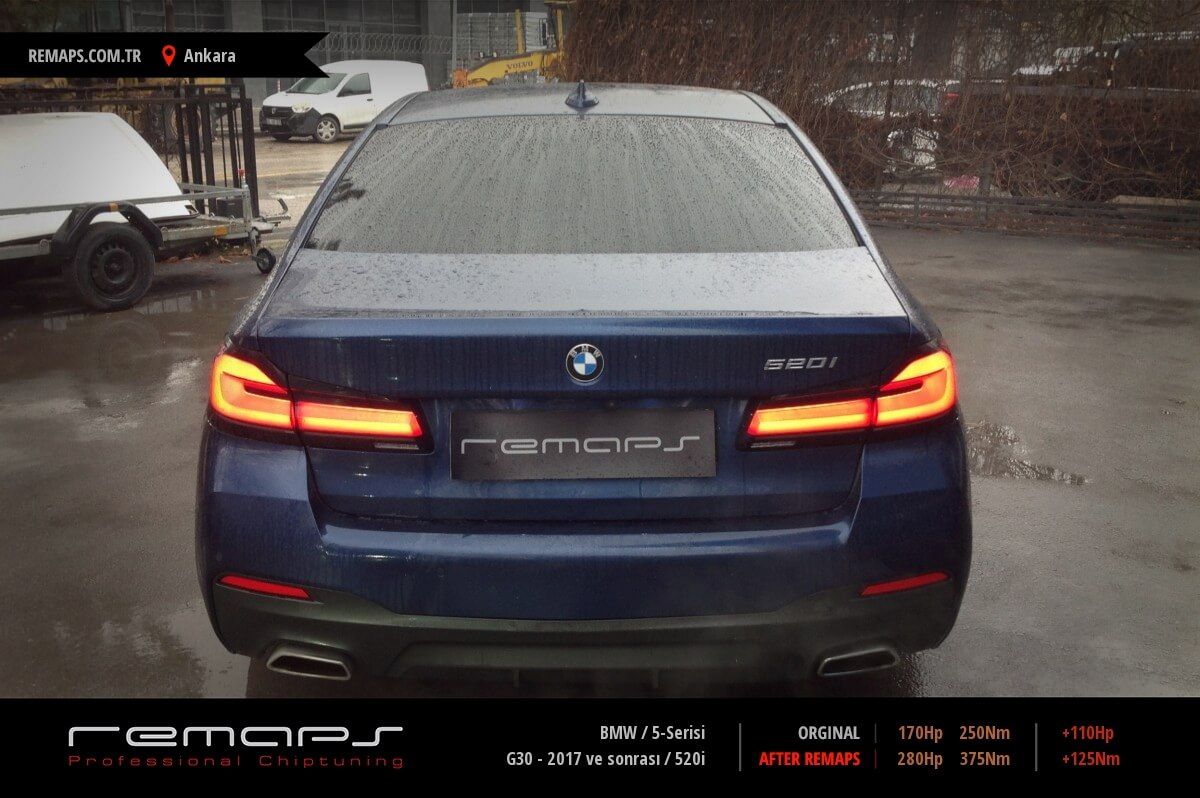 BMW 5-Serisi model benzinli aracınızın ürettiği 170hp / 250nm motor gücünü, Türkiye normlarında hazırladığımız chip tuning (ecu) yazılım uygulaması sonrasında, 280hp / 375nm ’lik performansa ulaşmasını sağlamaktayız. Kazanılan +110hp / + 125nm güç artışı sonrasında aracınızın egzoz emisyon değerleri kesinlikle değişmemekte ve duman atmamaktadır.