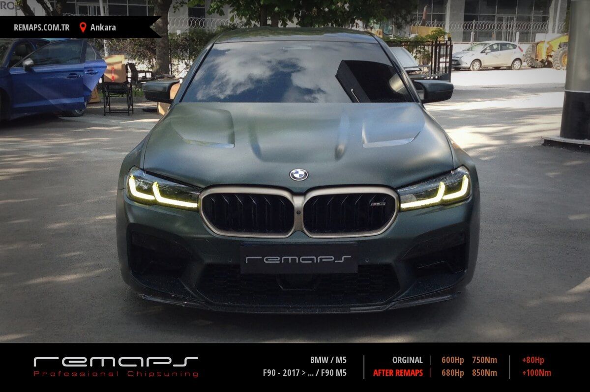 BMW M5 model benzinli aracınızın ürettiği 600hp / 750nm motor gücünü, Türkiye normlarında hazırladığımız chip tuning (ecu) yazılım uygulaması sonrasında, 680hp / 850nm ’lik performansa ulaşmasını sağlamaktayız. Kazanılan +80hp / + 100nm güç artışı sonrasında aracınızın egzoz emisyon değerleri kesinlikle değişmemekte ve duman atmamaktadır.
