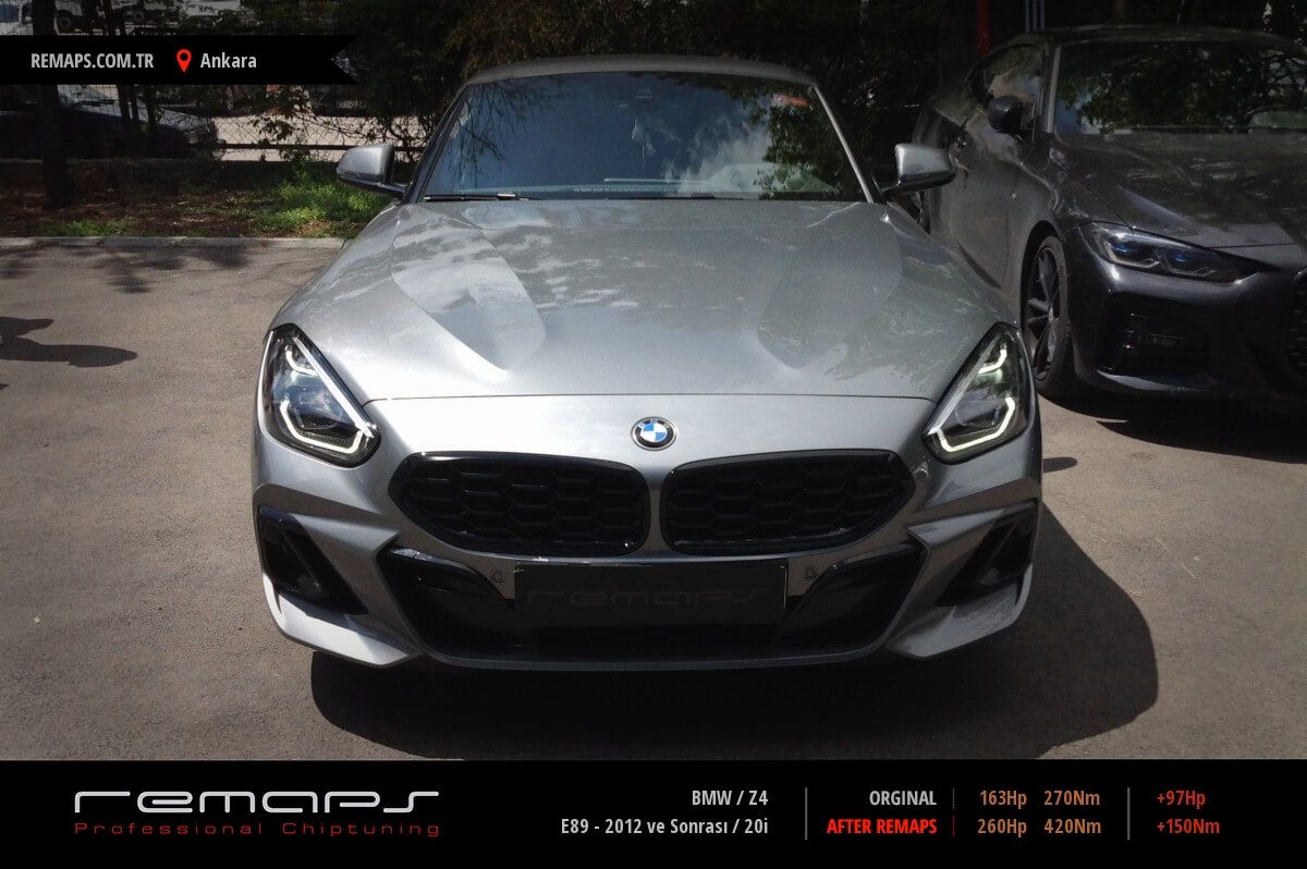 BMW Z4 Aracınızın motoruna uygulanacak chip tuning (ecu) yazılım işlemi ortalama 1 saat sürmektedir, daha fazla bilgi için lütfen Sık Sorulan Sorular bölümümüzü inceleyiniz.