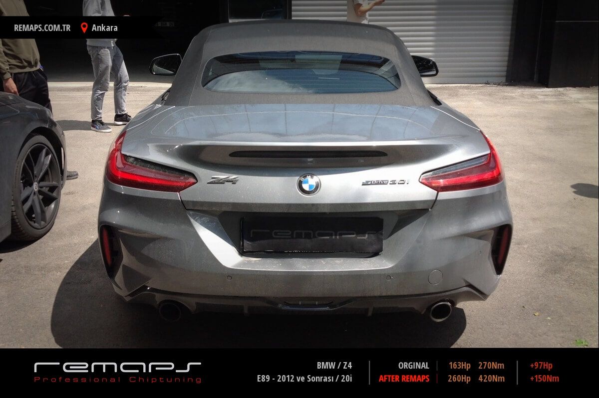 BMW Z4 model benzinli aracınızın ürettiği 163hp / 270nm motor gücünü, Türkiye normlarında hazırladığımız chip tuning (ecu) yazılım uygulaması sonrasında, 260hp / 420nm ’lik performansa ulaşmasını sağlamaktayız. Kazanılan +97hp / + 150nm güç artışı sonrasında aracınızın egzoz emisyon değerleri kesinlikle değişmemekte ve duman atmamaktadır.