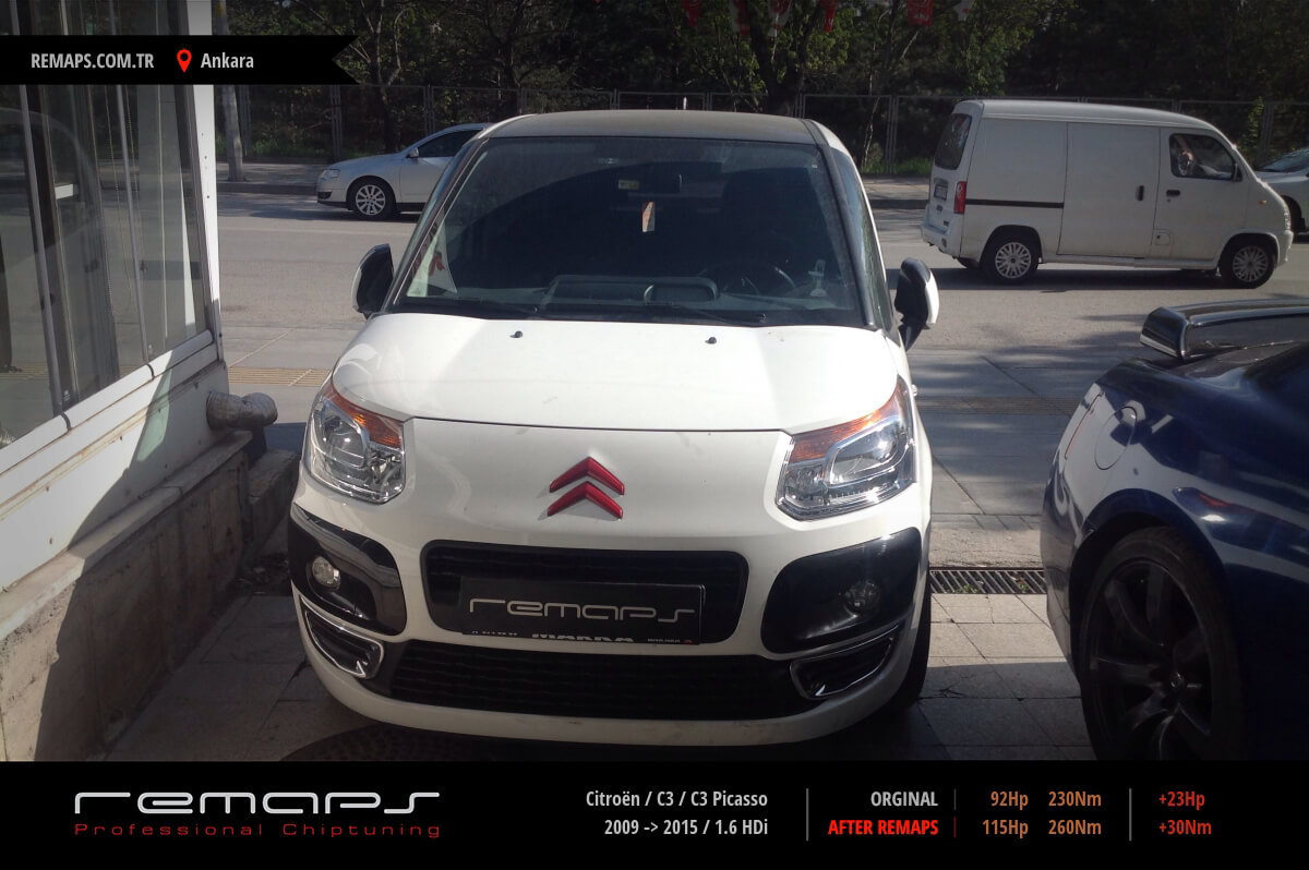 Citroën C3 / C3 Picasso model dizel aracınızın ürettiği 92hp / 230nm motor gücünü, Türkiye normlarında verimli hale getirmek adına hazırladıgımız chip tuning (ecu) yazılım uygulaması sonrasında, 115hp / 260nm ’lik performans artışı öngörmekteyiz. Kazanılan + 23hp / + 30nm güç artışı sonrasında kesinlike çevreye rahatsızlık vermeyecek (duman atmayacak) şekilde eksoz emisyon değerleriniz korunarak hazırlanmaktadır.