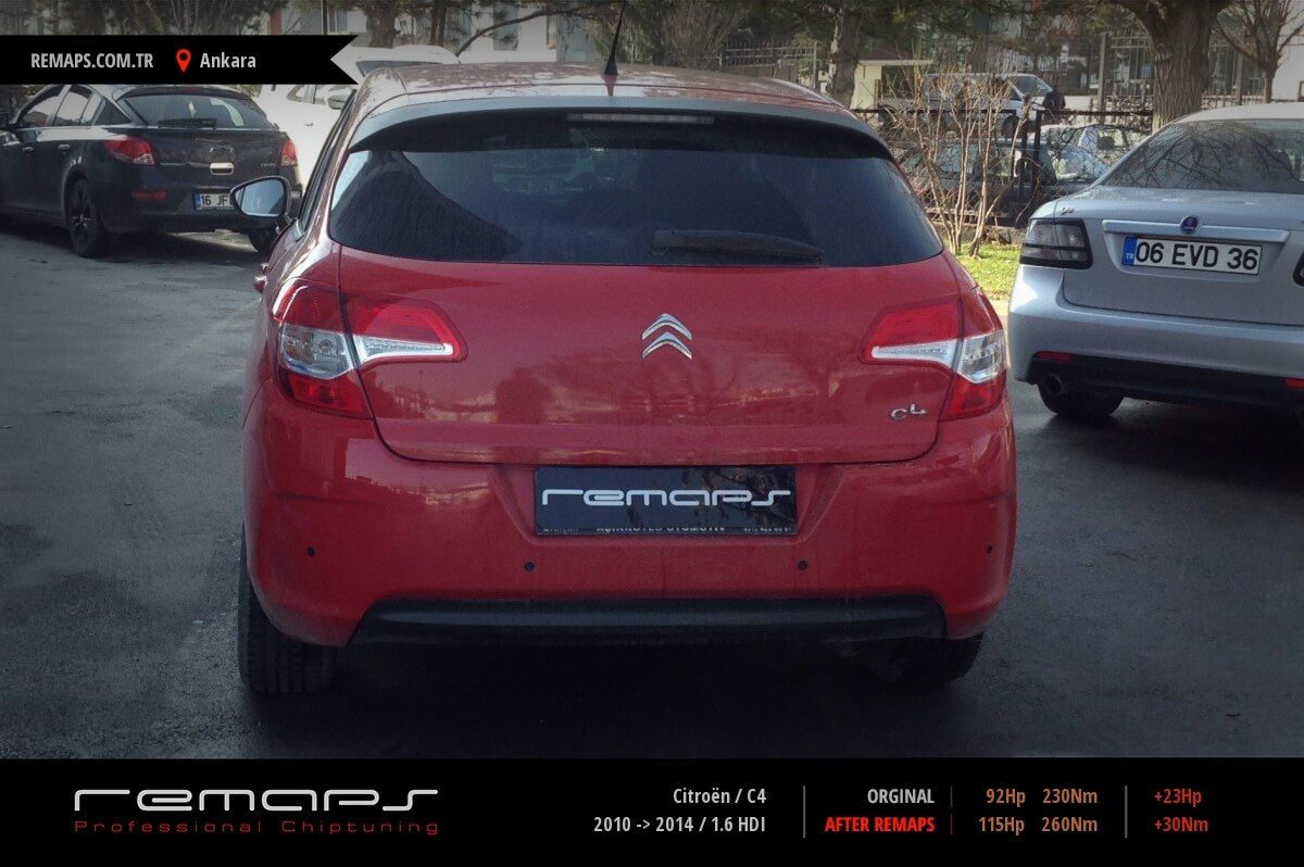 Citroën C4 model dizel aracınızın ürettiği 92hp / 230nm motor gücünü, Türkiye normlarında verimli hale getirmek adına hazırladıgımız chip tuning (ecu) yazılım uygulaması sonrasında, 115hp / 260nm ’lik performans artışı öngörmekteyiz. Kazanılan + 23hp / + 30nm güç artışı sonrasında kesinlike çevreye rahatsızlık vermeyecek (duman atmayacak) şekilde eksoz emisyon değerleriniz korunarak hazırlanmaktadır.