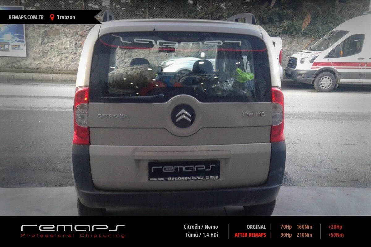 Citroën Nemo model dizel aracınızın ürettiği 70hp / 160nm motor gücünü, Türkiye normlarında verimli hale getirmek adına hazırladıgımız chip tuning (ecu) yazılım uygulaması sonrasında, 90hp / 210nm ’lik performans artışı öngörmekteyiz. Kazanılan + 20hp / + 50nm güç artışı sonrasında kesinlike çevreye rahatsızlık vermeyecek (duman atmayacak) şekilde eksoz emisyon değerleriniz korunarak hazırlanmaktadır.