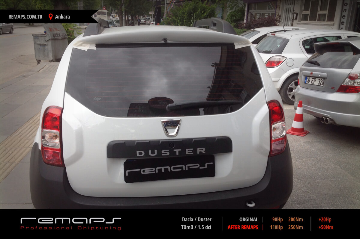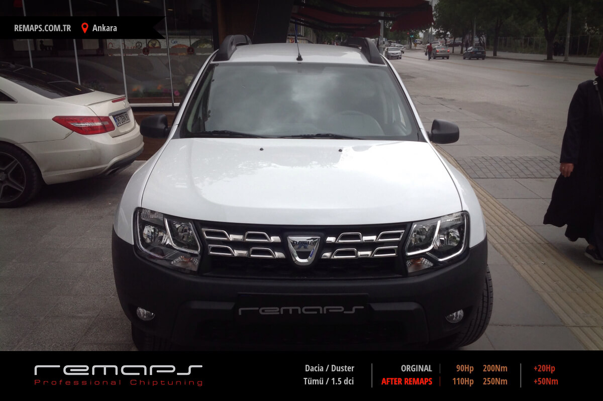 Dacia Duster model dizel aracınızın ürettiği 90hp / 200nm motor gücünü, Türkiye normlarında verimli hale getirmek adına hazırladıgımız chip tuning (ecu) yazılım uygulaması sonrasında, 110hp / 250nm ’lik performans artışı öngörmekteyiz. Kazanılan + 20hp / + 50nm güç artışı sonrasında kesinlike çevreye rahatsızlık vermeyecek (duman atmayacak) şekilde eksoz emisyon değerleriniz korunarak hazırlanmaktadır.