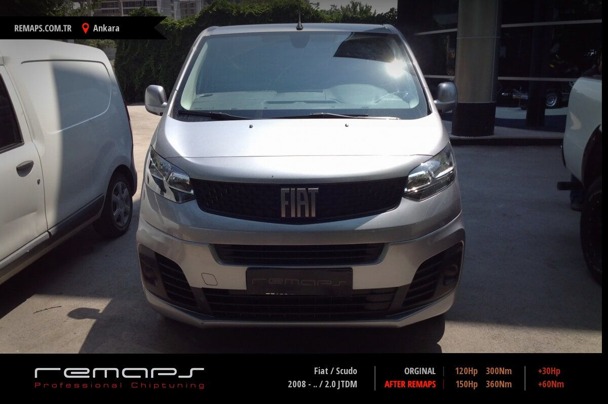 Fiat Scudo model dizel aracınızın ürettiği 120hp / 300nm motor gücünü, Türkiye normlarında verimli hale getirmek adına hazırladıgımız chip tuning (ecu) yazılım uygulaması sonrasında, 150hp / 360nm ’lik performans artışı öngörmekteyiz. Kazanılan + 30hp / + 60nm güç artışı sonrasında kesinlike çevreye rahatsızlık vermeyecek (duman atmayacak) şekilde eksoz emisyon değerleriniz korunarak hazırlanmaktadır.