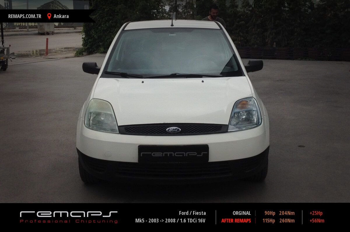 Ford Fiesta model dizel aracınızın ürettiği 90hp / 204nm motor gücünü, Türkiye normlarında verimli hale getirmek adına hazırladıgımız chip tuning (ecu) yazılım uygulaması sonrasında, 115hp / 260nm ’lik performans artışı öngörmekteyiz. Kazanılan + 25hp / + 56nm güç artışı sonrasında kesinlike çevreye rahatsızlık vermeyecek (duman atmayacak) şekilde eksoz emisyon değerleriniz korunarak hazırlanmaktadır.