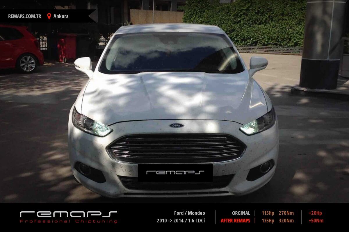 Ford Mondeo model dizel aracınızın ürettiği 115hp / 270nm motor gücünü, Türkiye normlarında verimli hale getirmek adına hazırladıgımız chip tuning (ecu) yazılım uygulaması sonrasında, 135hp / 320nm ’lik performans artışı öngörmekteyiz. Kazanılan + 20hp / + 50nm güç artışı sonrasında kesinlike çevreye rahatsızlık vermeyecek (duman atmayacak) şekilde eksoz emisyon değerleriniz korunarak hazırlanmaktadır.