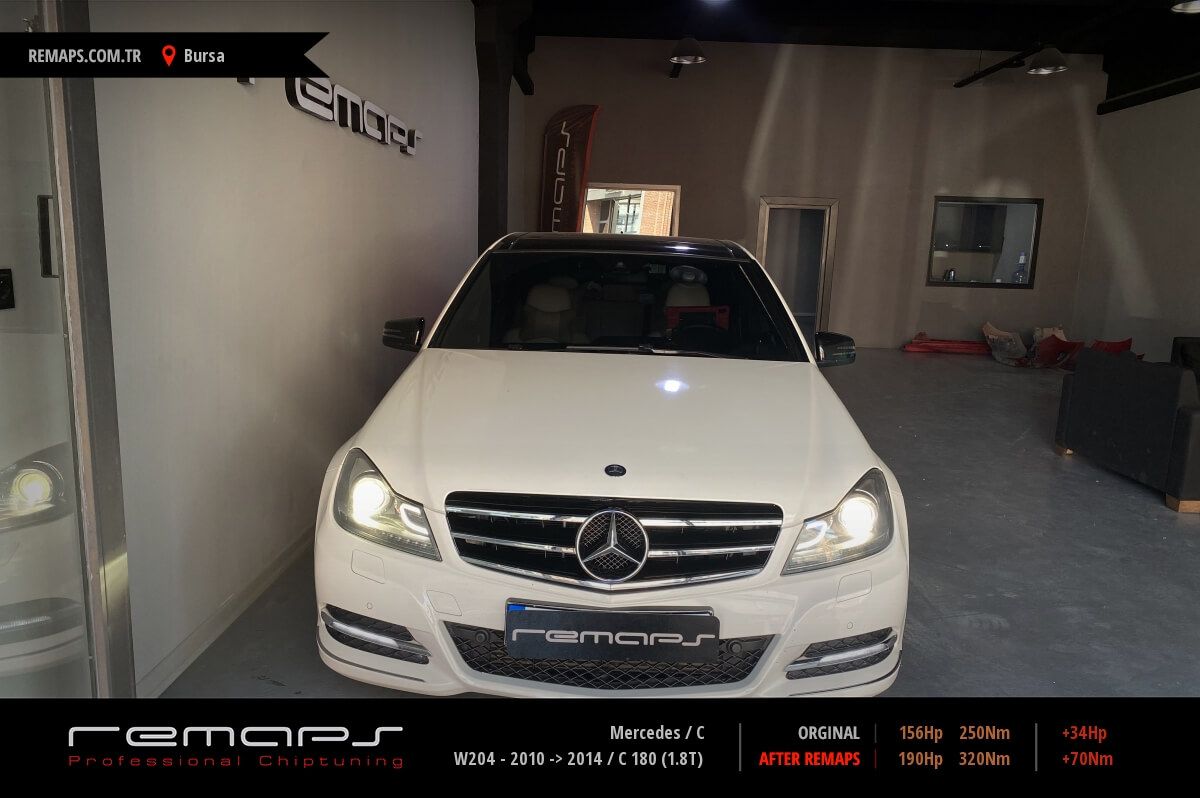 Mercedes C model benzinli aracınızın ürettiği 156hp / 250nm motor gücünü, Türkiye normlarında hazırladığımız chip tuning (ecu) yazılım uygulaması sonrasında, 190hp / 320nm ’lik performansa ulaşmasını sağlamaktayız. Kazanılan +34hp / + 70nm güç artışı sonrasında aracınızın egzoz emisyon değerleri kesinlikle değişmemekte ve duman atmamaktadır.