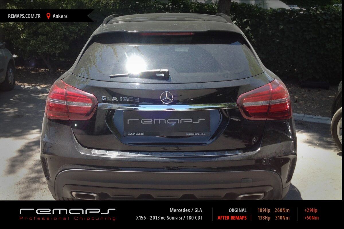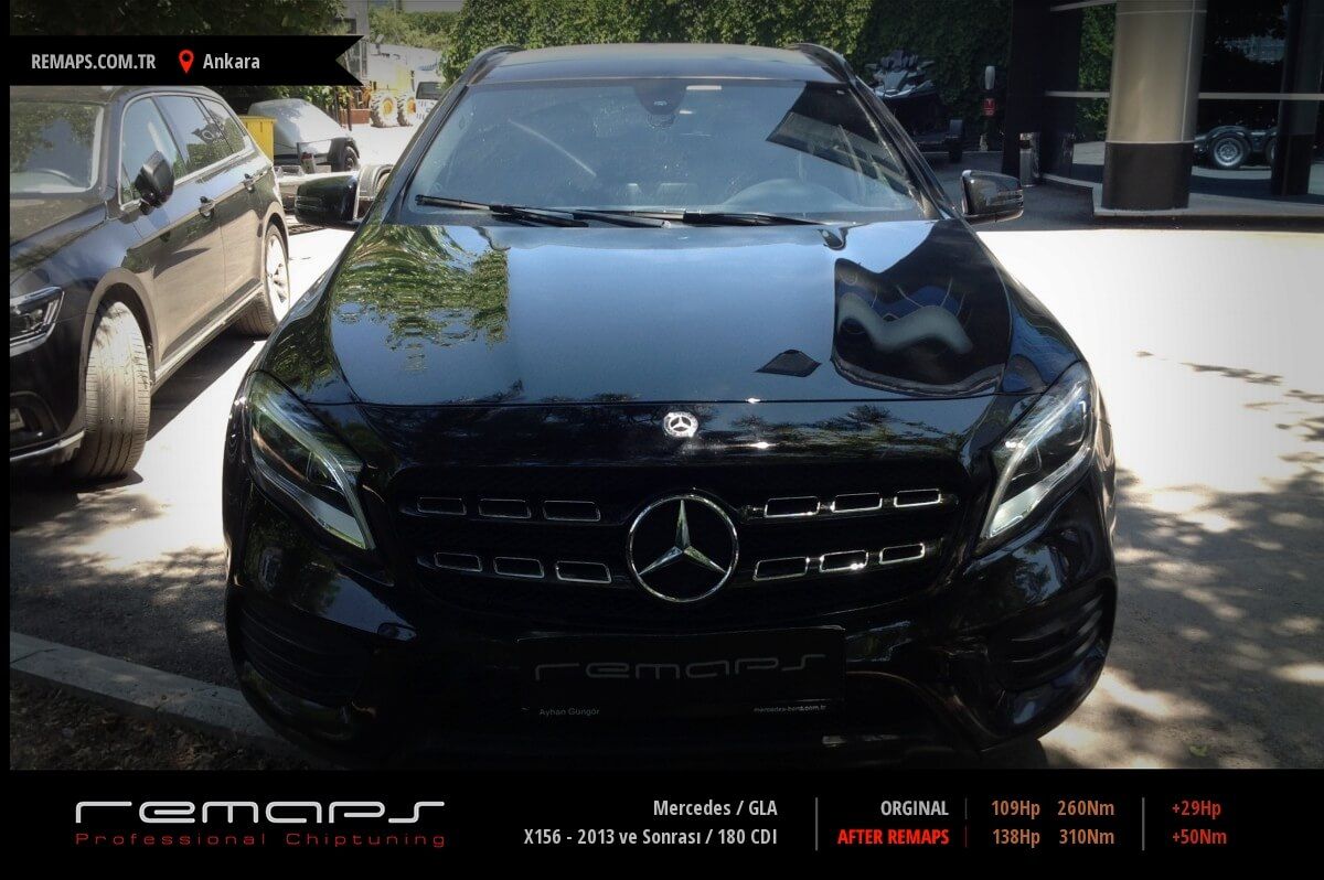 Mercedes GLA model dizel aracınızın ürettiği 109hp / 260nm motor gücünü, Türkiye normlarında verimli hale getirmek adına hazırladıgımız chip tuning (ecu) yazılım uygulaması sonrasında, 138hp / 310nm ’lik performans artışı öngörmekteyiz. Kazanılan + 29hp / + 50nm güç artışı sonrasında kesinlike çevreye rahatsızlık vermeyecek (duman atmayacak) şekilde eksoz emisyon değerleriniz korunarak hazırlanmaktadır.
