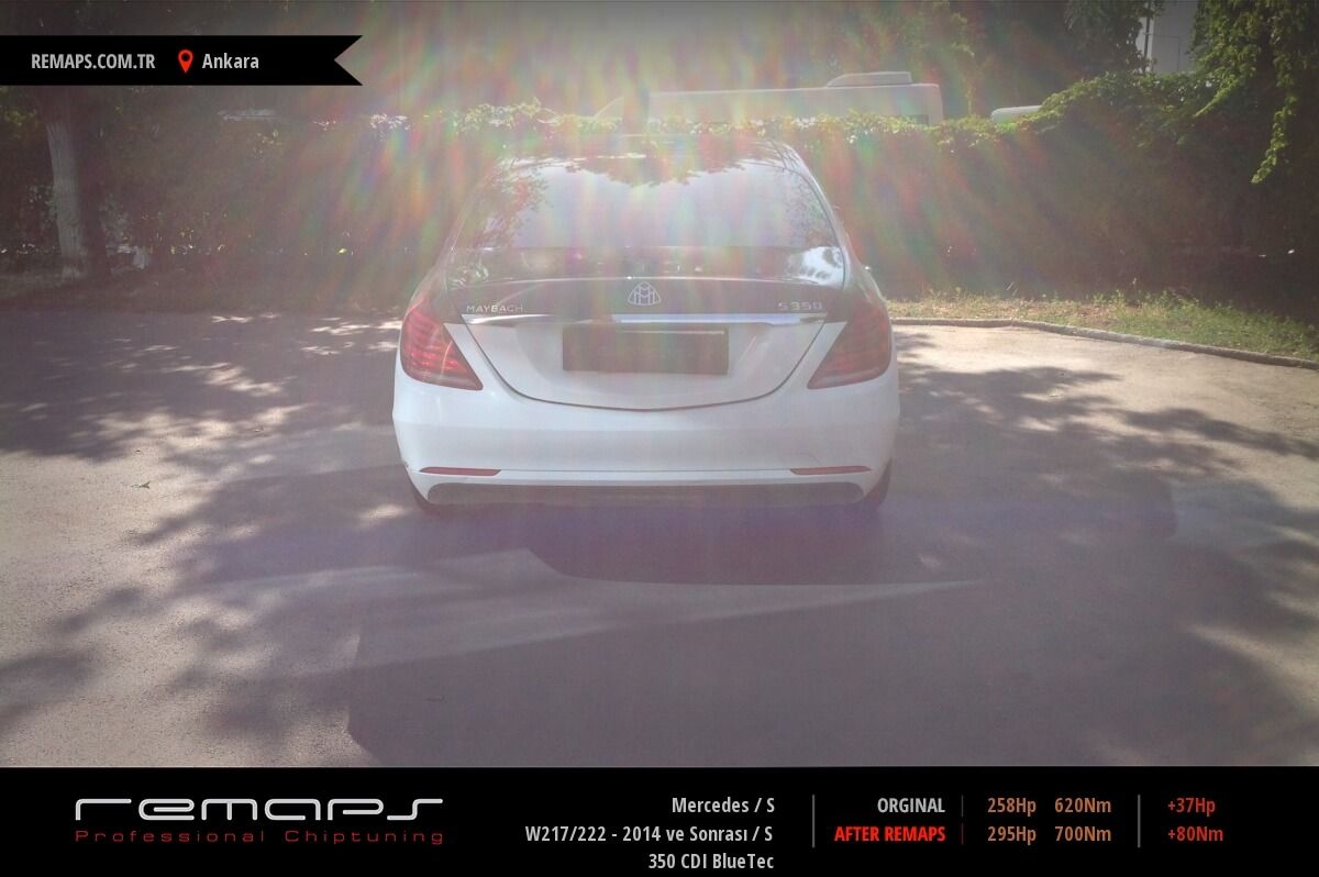 Mercedes S model dizel aracınızın ürettiği 258hp / 620nm motor gücünü, Türkiye normlarında verimli hale getirmek adına hazırladıgımız chip tuning (ecu) yazılım uygulaması sonrasında, 295hp / 700nm ’lik performans artışı öngörmekteyiz. Kazanılan + 37hp / + 80nm güç artışı sonrasında kesinlike çevreye rahatsızlık vermeyecek (duman atmayacak) şekilde eksoz emisyon değerleriniz korunarak hazırlanmaktadır.