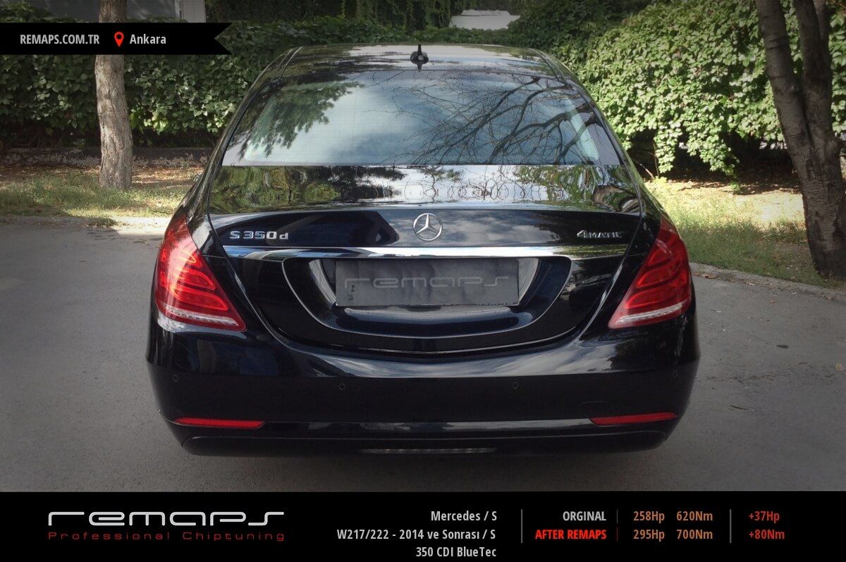 Mercedes S model dizel aracınızın ürettiği 258hp / 620nm motor gücünü, Türkiye normlarında verimli hale getirmek adına hazırladıgımız chip tuning (ecu) yazılım uygulaması sonrasında, 295hp / 700nm ’lik performans artışı öngörmekteyiz. Kazanılan + 37hp / + 80nm güç artışı sonrasında kesinlike çevreye rahatsızlık vermeyecek (duman atmayacak) şekilde eksoz emisyon değerleriniz korunarak hazırlanmaktadır.