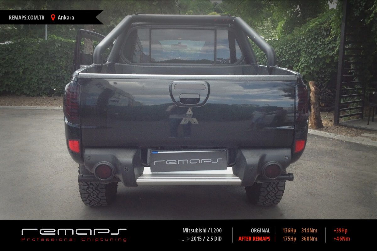 Mitsubishi L200 model dizel aracınızın ürettiği 136hp / 314nm motor gücünü, Türkiye normlarında verimli hale getirmek adına hazırladıgımız chip tuning (ecu) yazılım uygulaması sonrasında, 175hp / 360nm ’lik performans artışı öngörmekteyiz. Kazanılan + 39hp / + 46nm güç artışı sonrasında kesinlike çevreye rahatsızlık vermeyecek (duman atmayacak) şekilde eksoz emisyon değerleriniz korunarak hazırlanmaktadır.