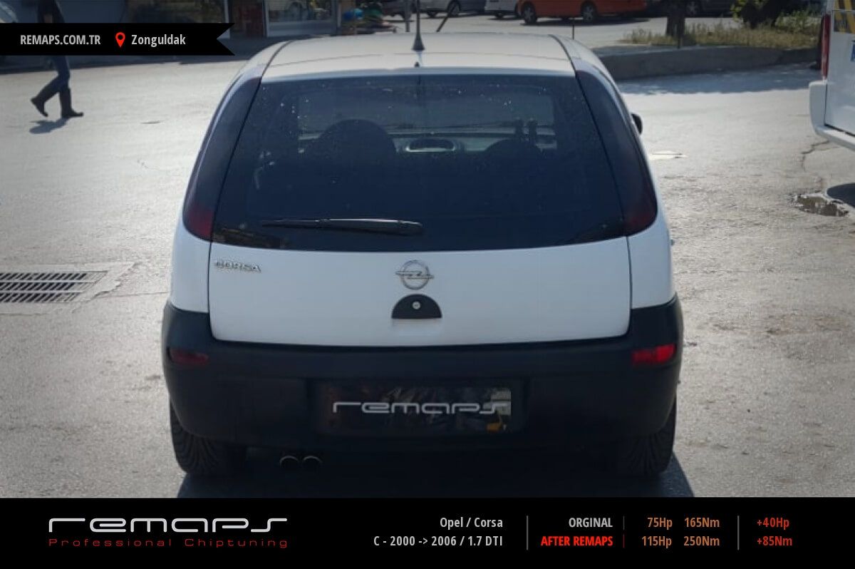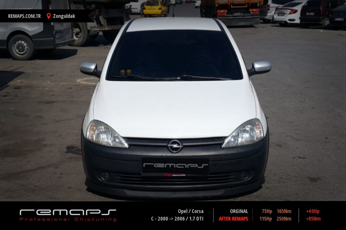 Opel Corsa model dizel aracınızın ürettiği 75hp / 165nm motor gücünü, Türkiye normlarında verimli hale getirmek adına hazırladıgımız chip tuning (ecu) yazılım uygulaması sonrasında, 115hp / 250nm ’lik performans artışı öngörmekteyiz. Kazanılan + 40hp / + 85nm güç artışı sonrasında kesinlike çevreye rahatsızlık vermeyecek şekilde eksoz emisyon değerleri korunarak hazırlanmaktadır.