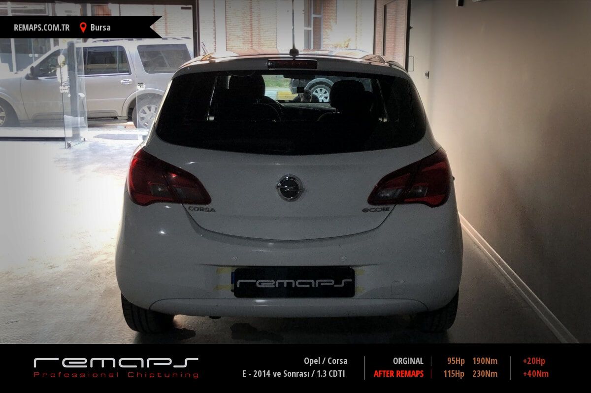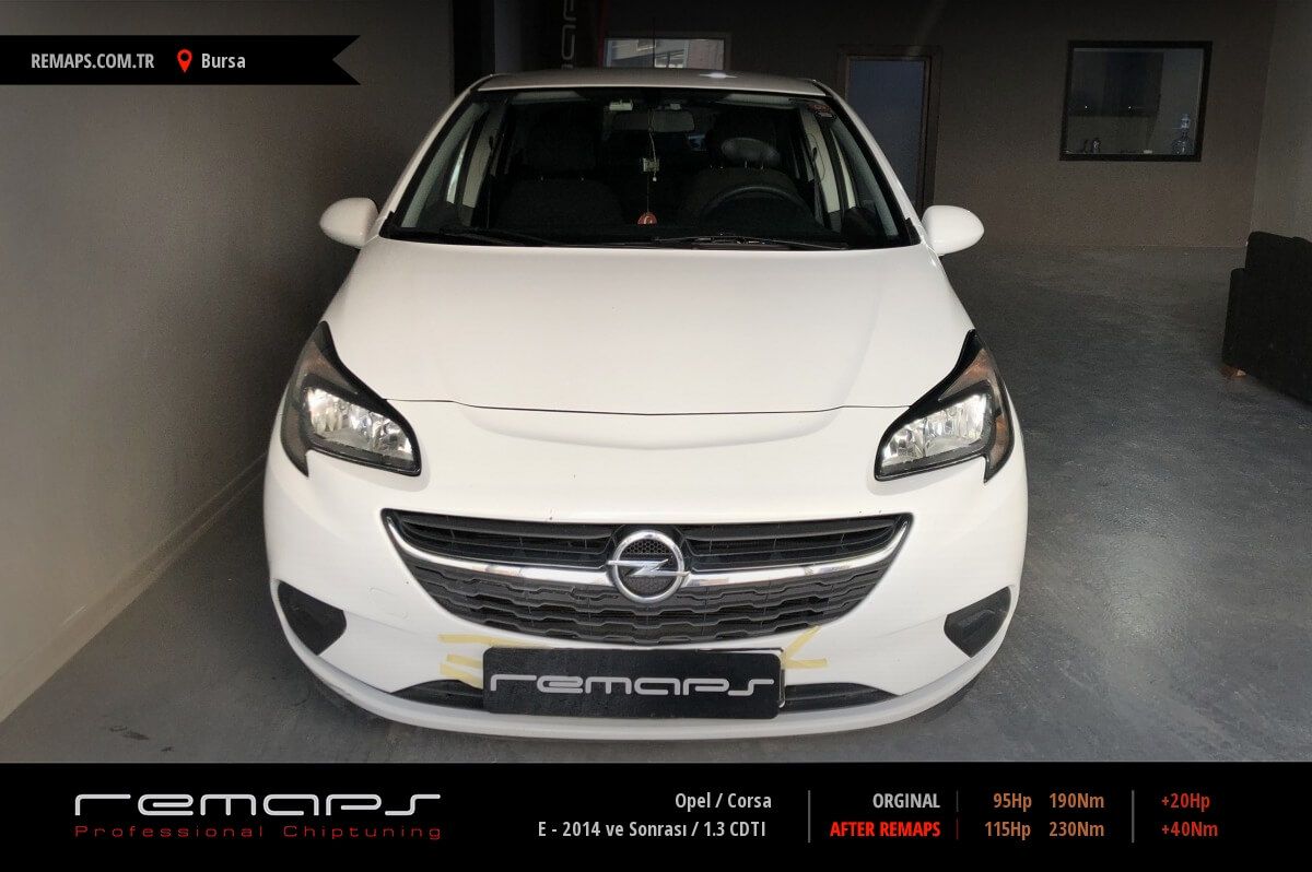 Opel Corsa model dizel aracınızın ürettiği 95hp / 190nm motor gücünü, Türkiye normlarında verimli hale getirmek adına hazırladıgımız chip tuning (ecu) yazılım uygulaması sonrasında, 115hp / 230nm ’lik performans artışı öngörmekteyiz. Kazanılan + 20hp / + 40nm güç artışı sonrasında kesinlike çevreye rahatsızlık vermeyecek (duman atmayacak) şekilde eksoz emisyon değerleriniz korunarak hazırlanmaktadır.