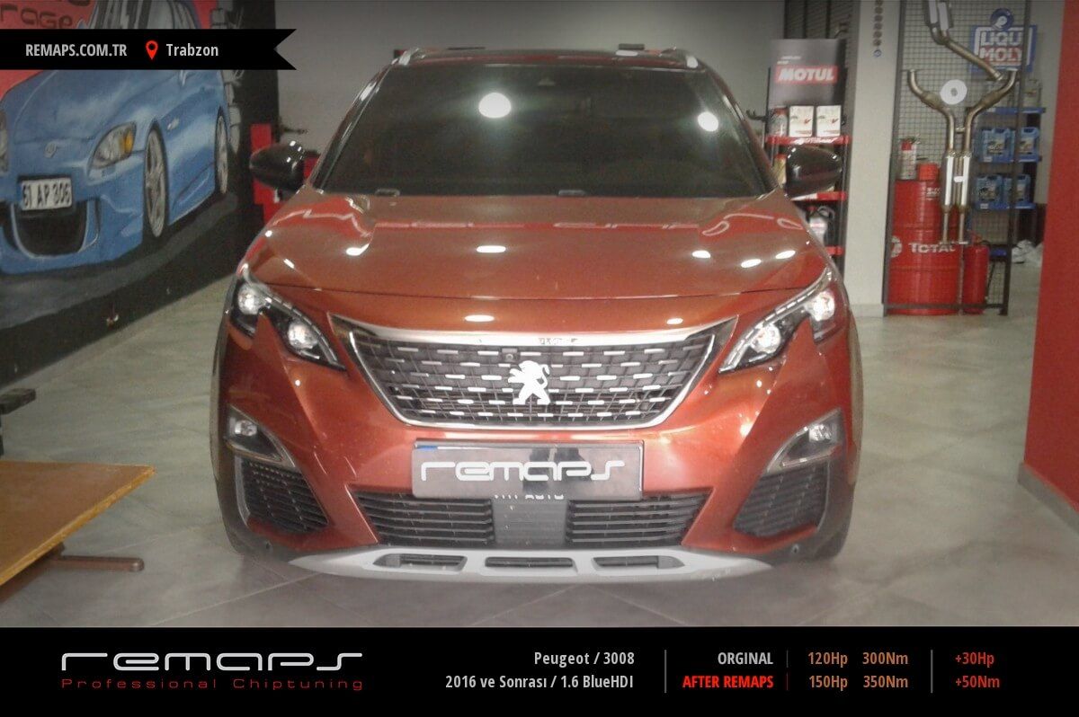 Peugeot 3008 model dizel aracınızın ürettiği 120hp / 300nm motor gücünü, Türkiye normlarında verimli hale getirmek adına hazırladıgımız chip tuning (ecu) yazılım uygulaması sonrasında, 150hp / 350nm ’lik performans artışı öngörmekteyiz. Kazanılan + 30hp / + 50nm güç artışı sonrasında kesinlike çevreye rahatsızlık vermeyecek (duman atmayacak) şekilde eksoz emisyon değerleriniz korunarak hazırlanmaktadır.