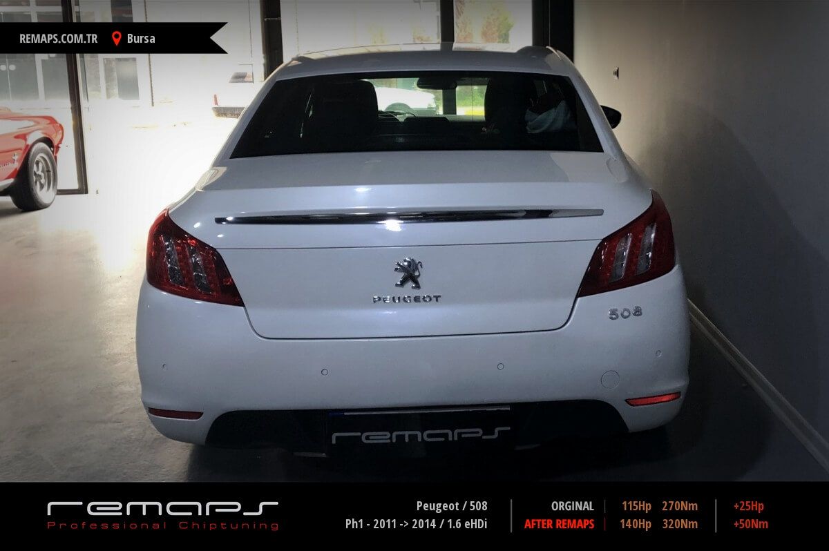 Peugeot 508 model dizel aracınızın ürettiği 115hp / 270nm motor gücünü, Türkiye normlarında verimli hale getirmek adına hazırladıgımız chip tuning (ecu) yazılım uygulaması sonrasında, 140hp / 320nm ’lik performans artışı öngörmekteyiz. Kazanılan + 25hp / + 50nm güç artışı sonrasında kesinlike çevreye rahatsızlık vermeyecek (duman atmayacak) şekilde eksoz emisyon değerleriniz korunarak hazırlanmaktadır.