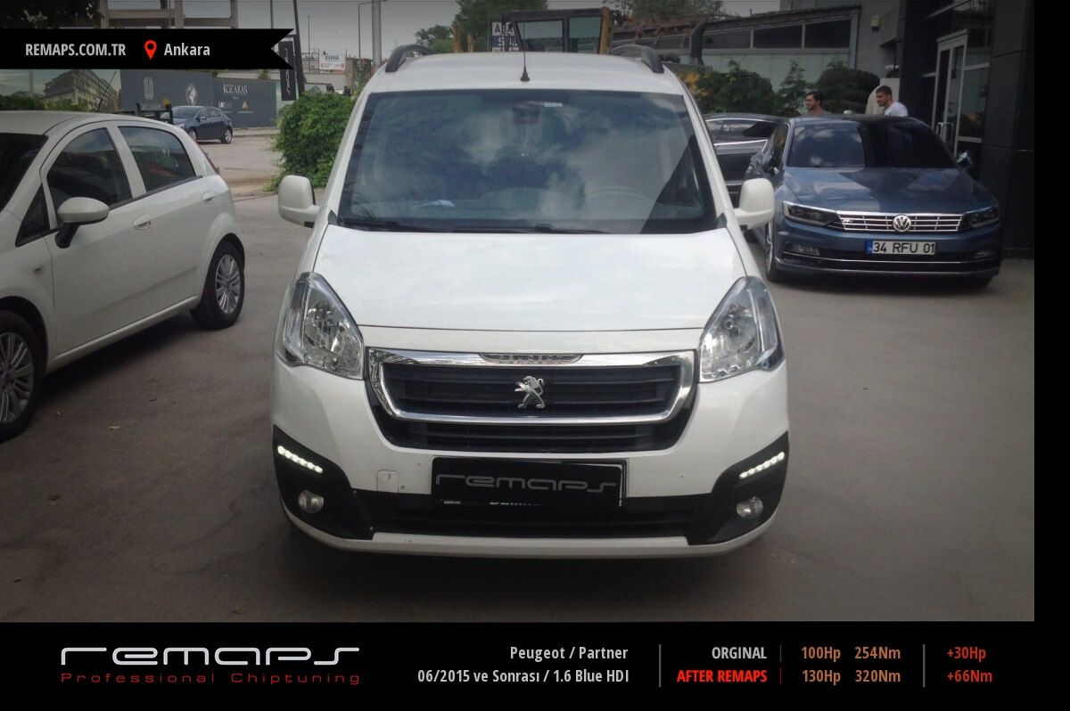 Peugeot Partner model dizel aracınızın ürettiği 100hp / 254nm motor gücünü, Türkiye normlarında verimli hale getirmek adına hazırladıgımız chip tuning (ecu) yazılım uygulaması sonrasında, 130hp / 320nm ’lik performans artışı öngörmekteyiz. Kazanılan + 30hp / + 66nm güç artışı sonrasında kesinlike çevreye rahatsızlık vermeyecek (duman atmayacak) şekilde eksoz emisyon değerleriniz korunarak hazırlanmaktadır.