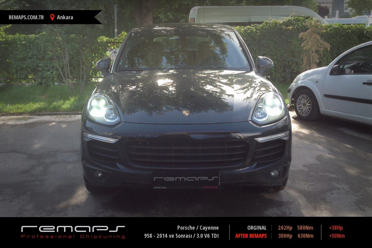 Porsche Cayenne model dizel aracınızın ürettiği 262hp / 580nm motor gücünü, Türkiye normlarında verimli hale getirmek adına hazırladıgımız chip tuning (ecu) yazılım uygulaması sonrasında, 300hp / 630nm ’lik performans artışı öngörmekteyiz. Kazanılan + 38hp / + 50nm güç artışı sonrasında kesinlike çevreye rahatsızlık vermeyecek (duman atmayacak) şekilde eksoz emisyon değerleriniz korunarak hazırlanmaktadır.