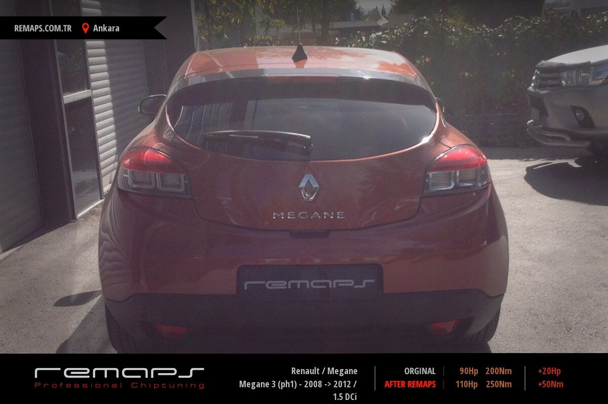 Renault Megane model dizel aracınızın ürettiği 90hp / 200nm motor gücünü, Türkiye normlarında verimli hale getirmek adına hazırladıgımız chip tuning (ecu) yazılım uygulaması sonrasında, 110hp / 250nm ’lik performans artışı öngörmekteyiz. Kazanılan + 20hp / + 50nm güç artışı sonrasında kesinlike çevreye rahatsızlık vermeyecek (duman atmayacak) şekilde eksoz emisyon değerleriniz korunarak hazırlanmaktadır.
