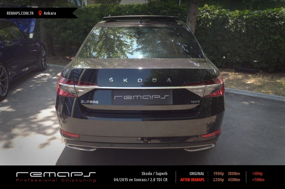 Skoda Superb model dizel aracınızın ürettiği 190hp / 380nm motor gücünü, Türkiye normlarında verimli hale getirmek adına hazırladıgımız chip tuning (ecu) yazılım uygulaması sonrasında, 220hp / 450nm ’lik performans artışı öngörmekteyiz. Kazanılan + 30hp / + 70nm güç artışı sonrasında kesinlike çevreye rahatsızlık vermeyecek (duman atmayacak) şekilde eksoz emisyon değerleriniz korunarak hazırlanmaktadır.