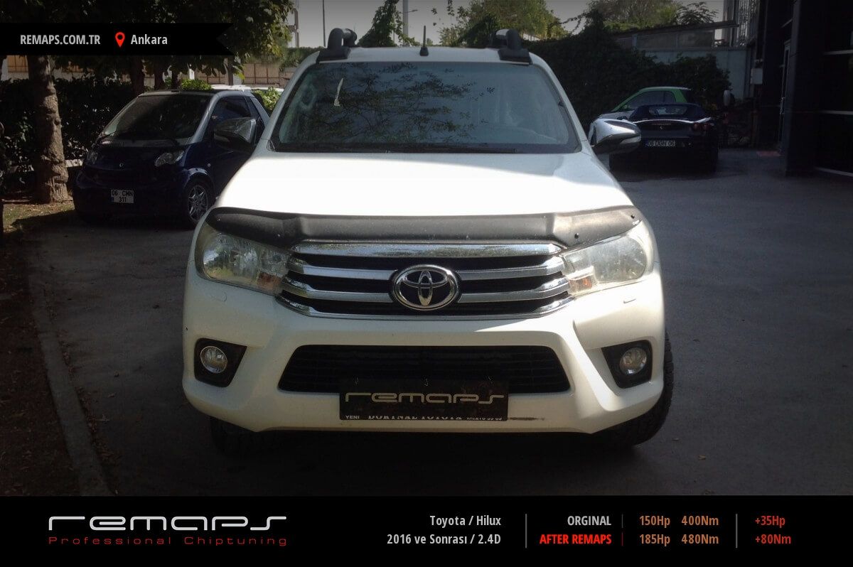 Toyota Hilux model dizel aracınızın ürettiği 150hp / 400nm motor gücünü, Türkiye normlarında verimli hale getirmek adına hazırladıgımız chip tuning (ecu) yazılım uygulaması sonrasında, 185hp / 480nm ’lik performans artışı öngörmekteyiz. Kazanılan + 35hp / + 80nm güç artışı sonrasında kesinlike çevreye rahatsızlık vermeyecek (duman atmayacak) şekilde eksoz emisyon değerleriniz korunarak hazırlanmaktadır.