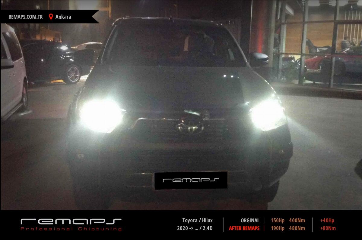 Toyota Hilux model dizel aracınızın ürettiği 150hp / 400nm motor gücünü, Türkiye normlarında verimli hale getirmek adına hazırladıgımız chip tuning (ecu) yazılım uygulaması sonrasında, 190hp / 480nm ’lik performans artışı öngörmekteyiz. Kazanılan + 40hp / + 80nm güç artışı sonrasında kesinlike çevreye rahatsızlık vermeyecek (duman atmayacak) şekilde eksoz emisyon değerleriniz korunarak hazırlanmaktadır.