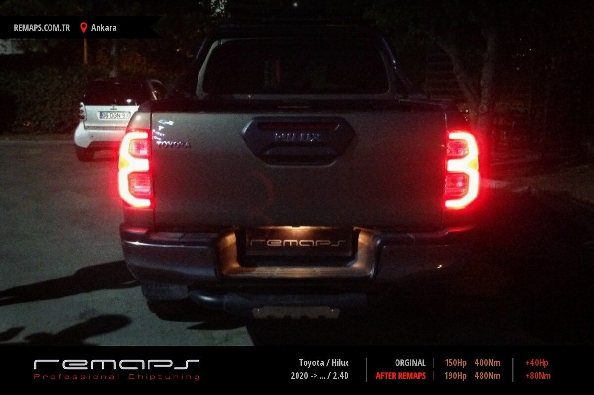 Toyota Hilux model dizel aracınızın ürettiği 150hp / 400nm motor gücünü, Türkiye normlarında verimli hale getirmek adına hazırladıgımız chip tuning (ecu) yazılım uygulaması sonrasında, 190hp / 480nm ’lik performans artışı öngörmekteyiz. Kazanılan + 40hp / + 80nm güç artışı sonrasında kesinlike çevreye rahatsızlık vermeyecek (duman atmayacak) şekilde eksoz emisyon değerleriniz korunarak hazırlanmaktadır.