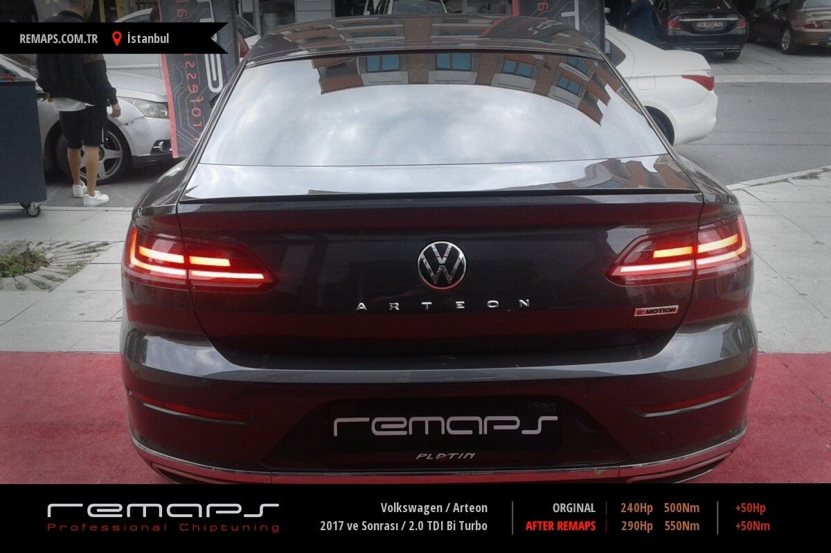 Volkswagen Arteon model dizel aracınızın ürettiği 240hp / 500nm motor gücünü, Türkiye normlarında verimli hale getirmek adına hazırladıgımız chip tuning (ecu) yazılım uygulaması sonrasında, 290hp / 550nm ’lik performans artışı öngörmekteyiz. Kazanılan + 50hp / + 50nm güç artışı sonrasında kesinlike çevreye rahatsızlık vermeyecek (duman atmayacak) şekilde eksoz emisyon değerleriniz korunarak hazırlanmaktadır.