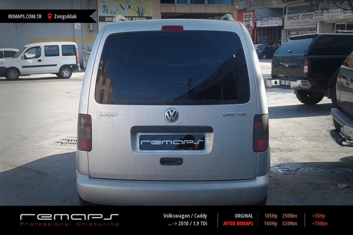 Volkswagen Caddy model dizel aracınızın ürettiği 105hp / 250nm motor gücünü, Türkiye normlarında verimli hale getirmek adına hazırladıgımız chip tuning (ecu) yazılım uygulaması sonrasında, 140hp / 320nm ’lik performans artışı öngörmekteyiz. Kazanılan + 35hp / + 70nm güç artışı sonrasında kesinlike çevreye rahatsızlık vermeyecek (duman atmayacak) şekilde eksoz emisyon değerleriniz korunarak hazırlanmaktadır.