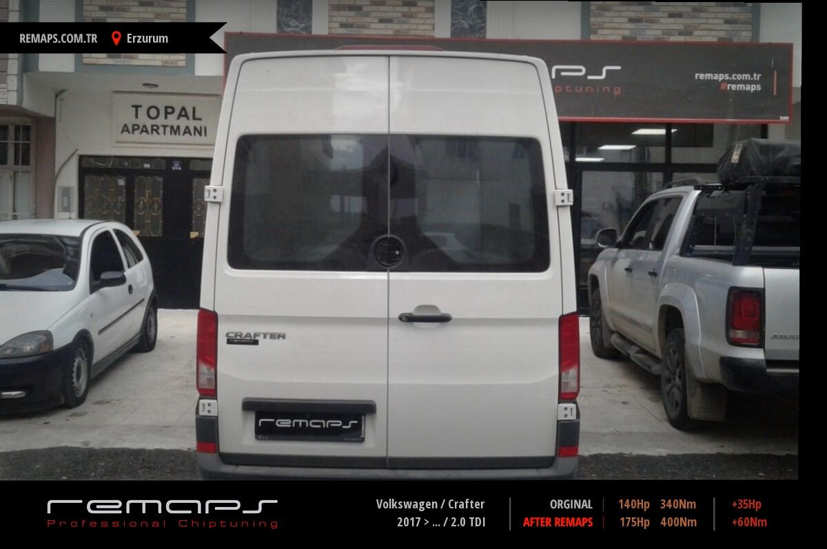 Volkswagen Crafter model dizel aracınızın ürettiği 140hp / 340nm motor gücünü, Türkiye normlarında verimli hale getirmek adına hazırladıgımız chip tuning (ecu) yazılım uygulaması sonrasında, 175hp / 400nm ’lik performans artışı öngörmekteyiz. Kazanılan + 35hp / + 60nm güç artışı sonrasında kesinlike çevreye rahatsızlık vermeyecek (duman atmayacak) şekilde eksoz emisyon değerleriniz korunarak hazırlanmaktadır.