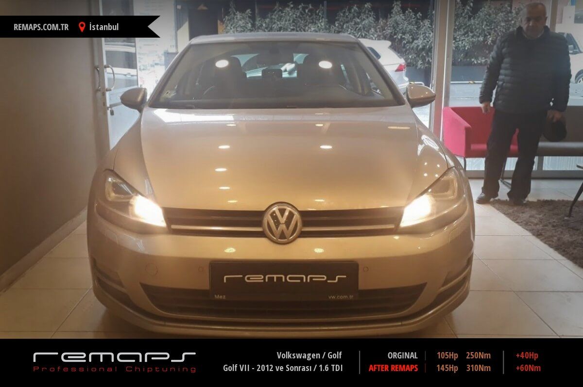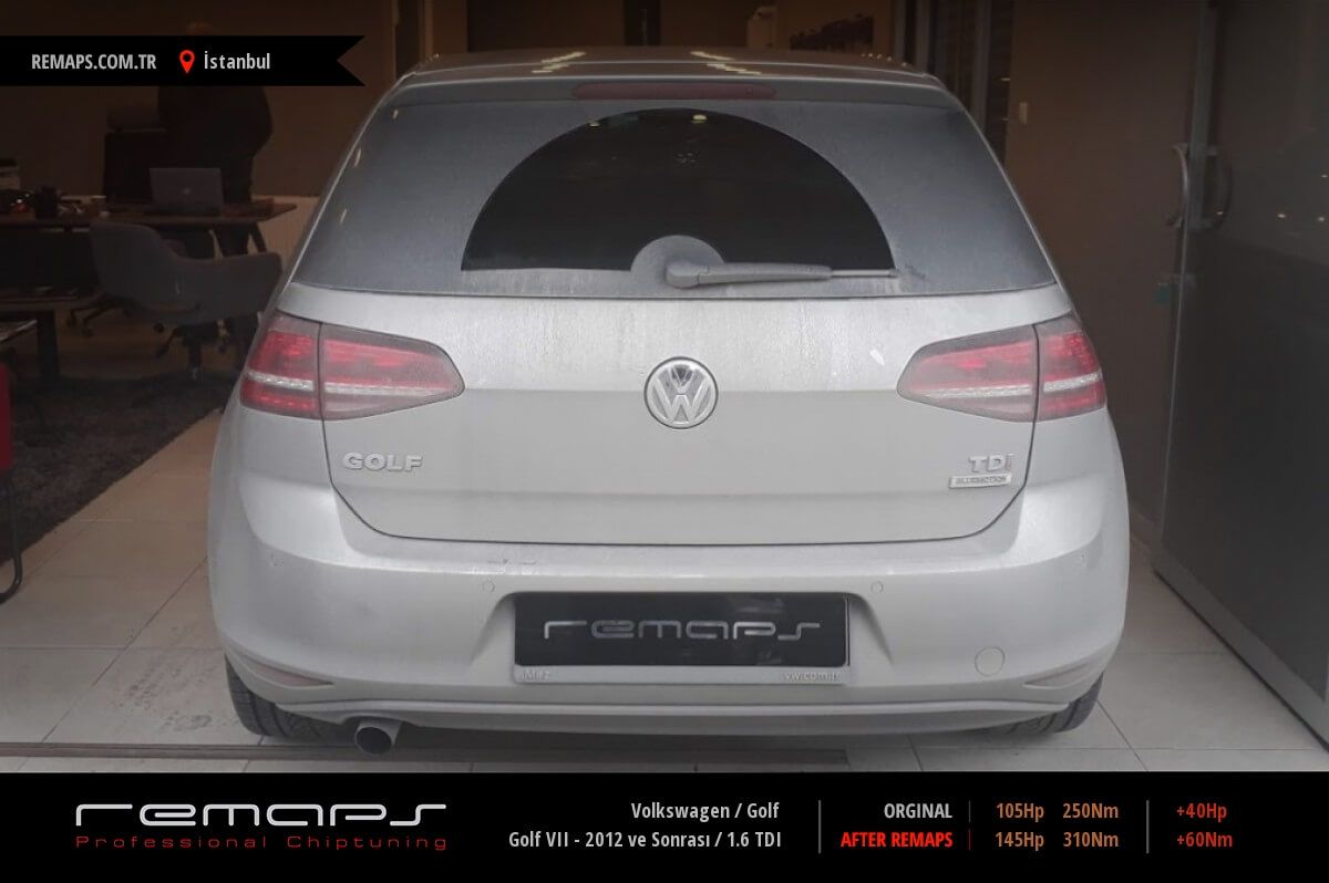 Volkswagen Golf model dizel aracınızın ürettiği 105hp / 250nm motor gücünü, Türkiye normlarında verimli hale getirmek adına hazırladıgımız chip tuning (ecu) yazılım uygulaması sonrasında, 145hp / 310nm ’lik performans artışı öngörmekteyiz. Kazanılan + 40hp / + 60nm güç artışı sonrasında kesinlike çevreye rahatsızlık vermeyecek (duman atmayacak) şekilde eksoz emisyon değerleriniz korunarak hazırlanmaktadır.