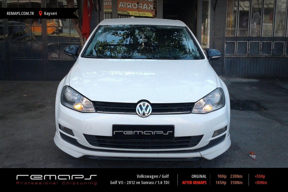 Volkswagen Golf model dizel aracınızın ürettiği 90hp / 230nm motor gücünü, Türkiye normlarında verimli hale getirmek adına hazırladıgımız chip tuning (ecu) yazılım uygulaması sonrasında, 145hp / 310nm ’lik performans artışı öngörmekteyiz. Kazanılan + 55hp / + 80nm güç artışı sonrasında kesinlike çevreye rahatsızlık vermeyecek (duman atmayacak) şekilde eksoz emisyon değerleriniz korunarak hazırlanmaktadır.