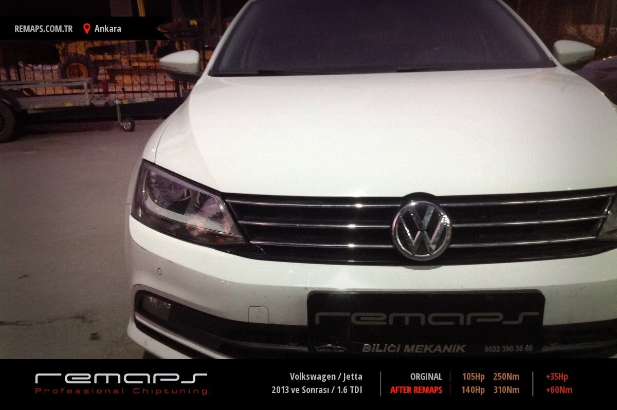 Volkswagen Jetta model dizel aracınızın ürettiği 105hp / 250nm motor gücünü, Türkiye normlarında verimli hale getirmek adına hazırladıgımız chip tuning (ecu) yazılım uygulaması sonrasında, 140hp / 310nm ’lik performans artışı öngörmekteyiz. Kazanılan + 35hp / + 60nm güç artışı sonrasında kesinlike çevreye rahatsızlık vermeyecek (duman atmayacak) şekilde eksoz emisyon değerleriniz korunarak hazırlanmaktadır.