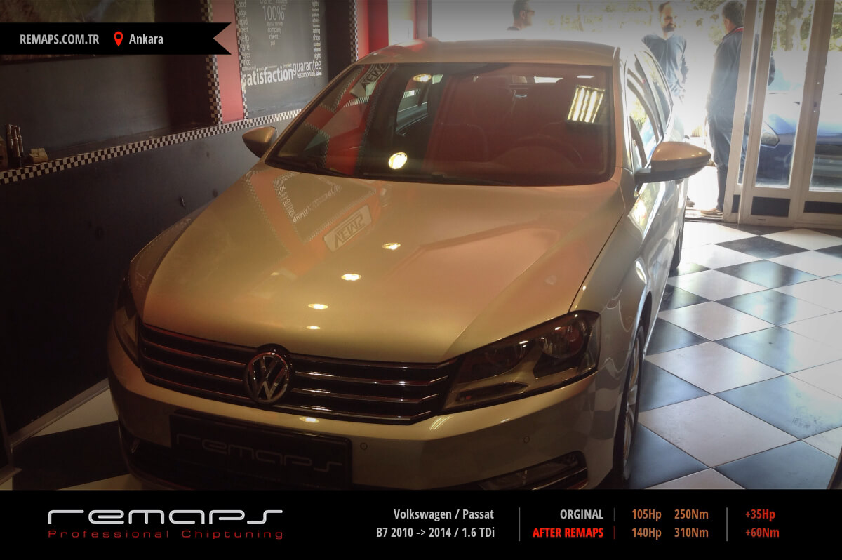 Volkswagen Passat model dizel aracınızın ürettiği 105hp / 250nm motor gücünü, Türkiye normlarında verimli hale getirmek adına hazırladıgımız chip tuning (ecu) yazılım uygulaması sonrasında, 140hp / 310nm ’lik performans artışı öngörmekteyiz. Kazanılan + 35hp / + 60nm güç artışı sonrasında kesinlike çevreye rahatsızlık vermeyecek (duman atmayacak) şekilde eksoz emisyon değerleriniz korunarak hazırlanmaktadır.